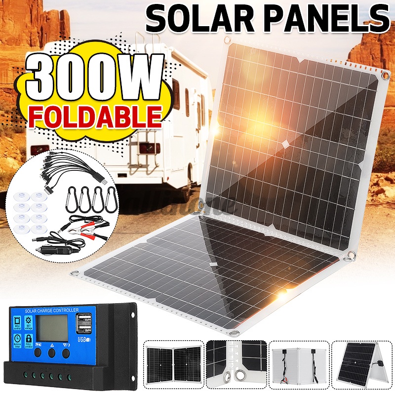 300W/150W Foldable Portable Solar Panel Kit + 30A/60A/100A Solar Controller Solar Battery Charger Panel for Car RV Yacht Charger Outdoor