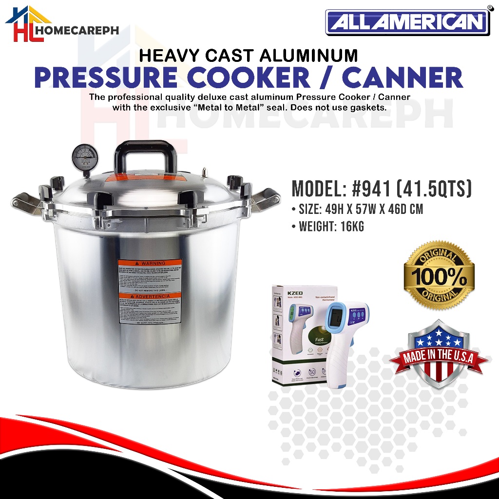All American #941 Heavy Cast Aluminum Pressure Canner with Free Thermometer Gun