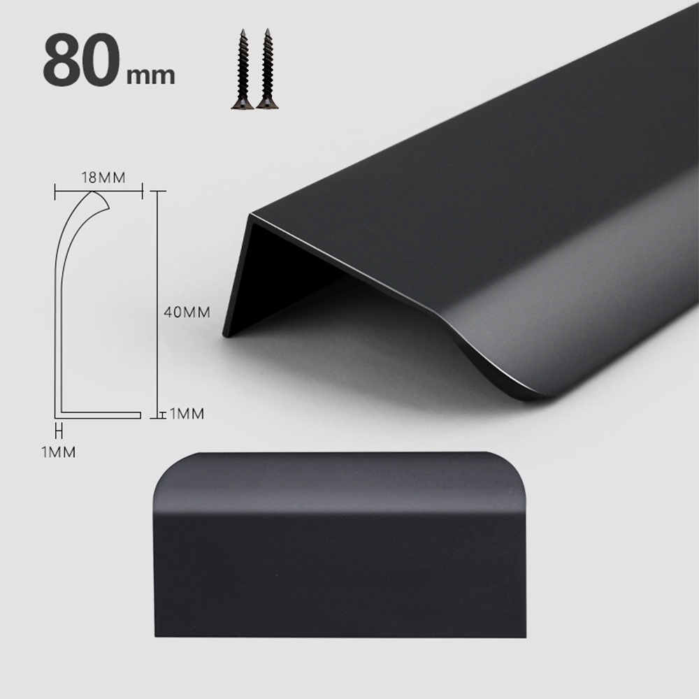 Manila Stock Black Aluminum Alloy Cabinet Handle Drawer Pull Hidden Recessed Furniture Curved Style
