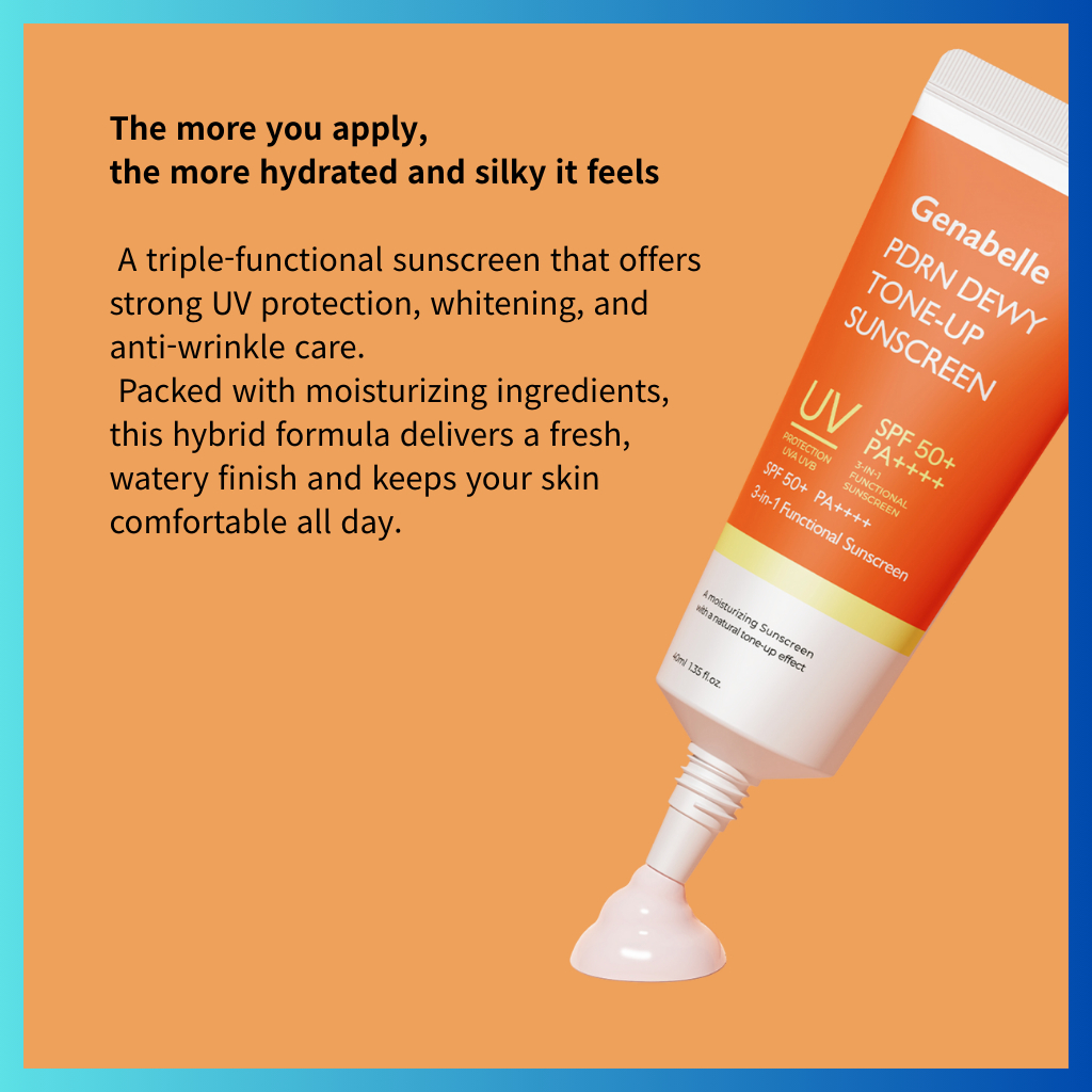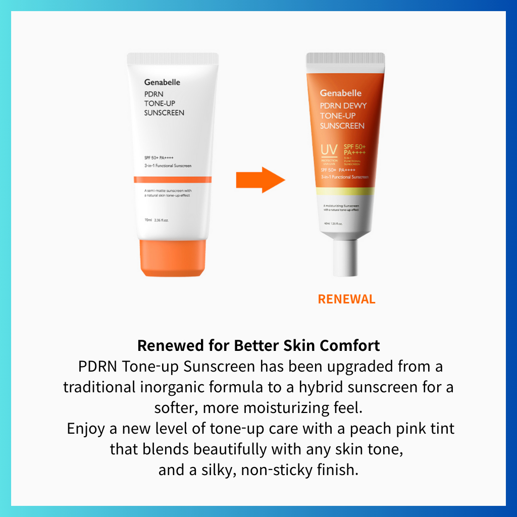 Genabelle PDRN Dewy Tone-Up Sunscreen SPF50+ PA++++ for Oily & Combination Skin | Peach Base | Moisturizing Formula | Foundation-Free Glow | Derma Cosmetic