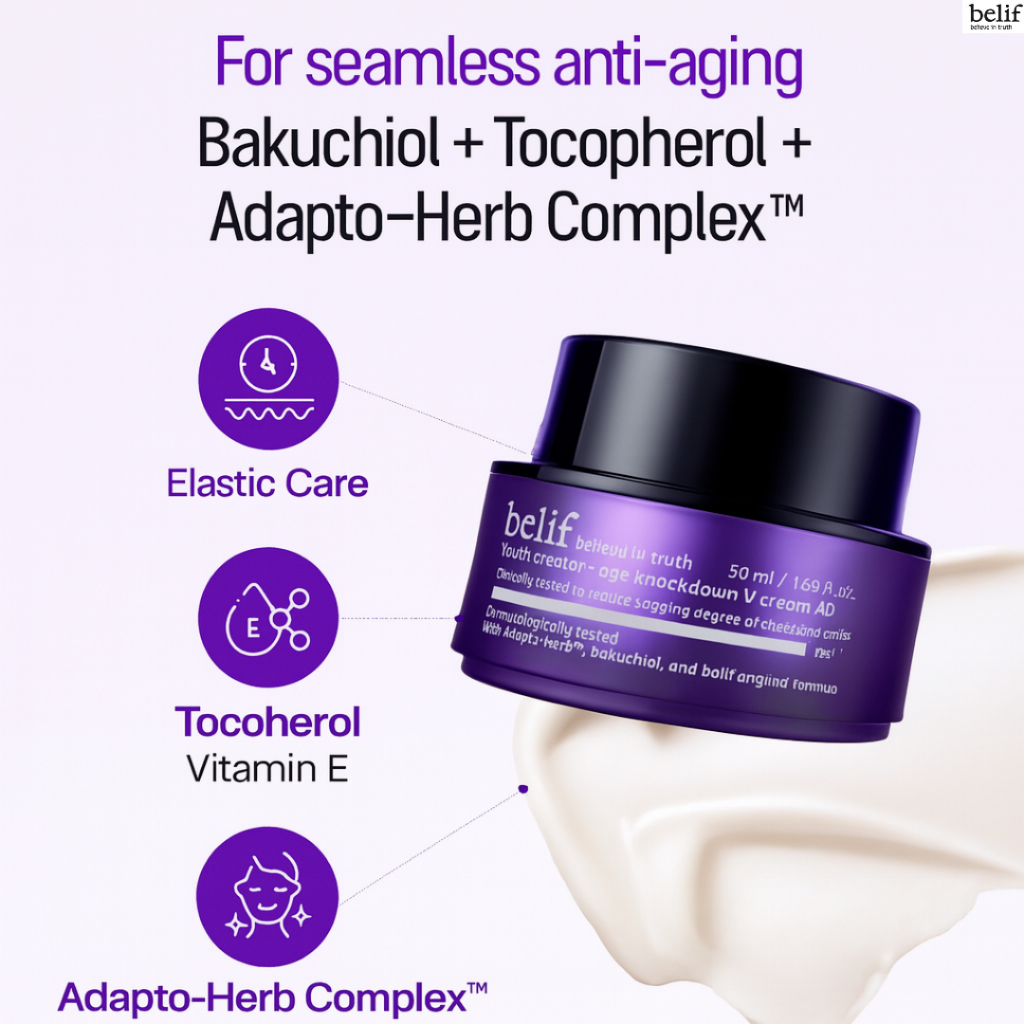 Belif Youth Creator-Age Knockdown Serum l Cream 50ml lifts facial, anti-aging, firming skin