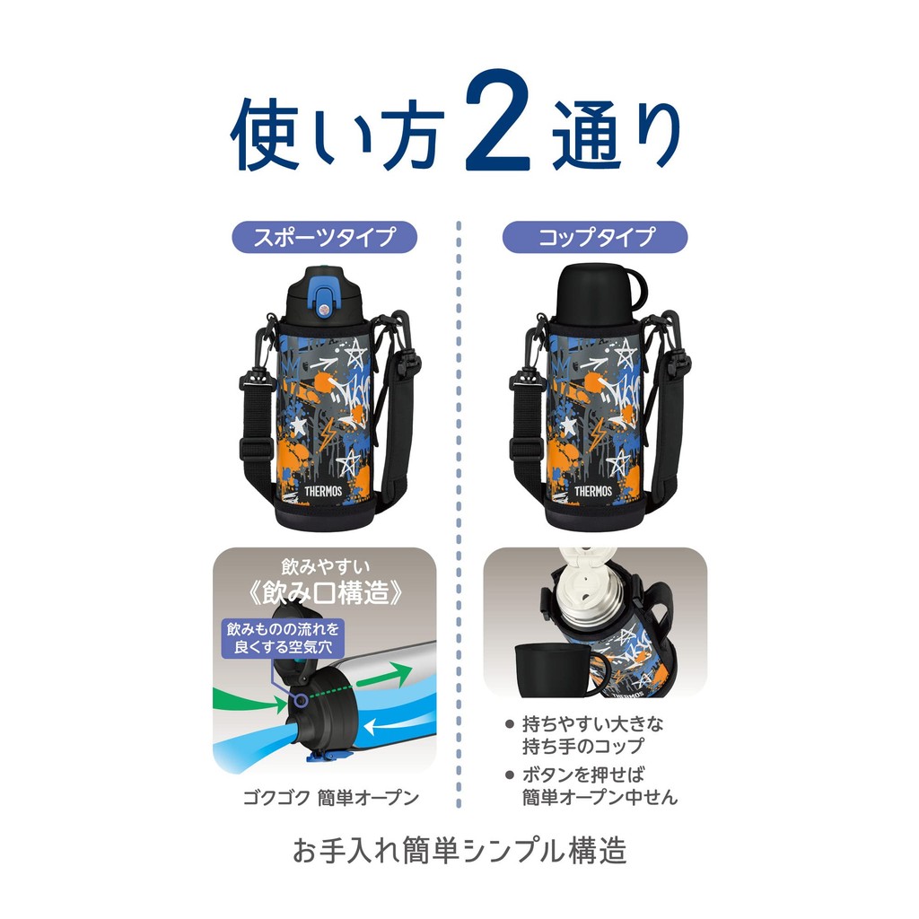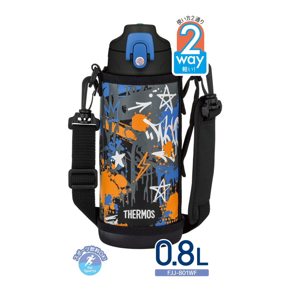 Thermos Vacuum Insulated 2-Way Bottle 0.8L/0.83L Black Blue with Direct Drinking and Cup for Kids, Suitable for School Commute FJJ-801WF BK-BL【Direct from Japan】