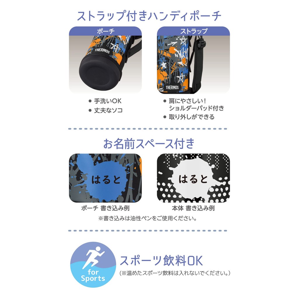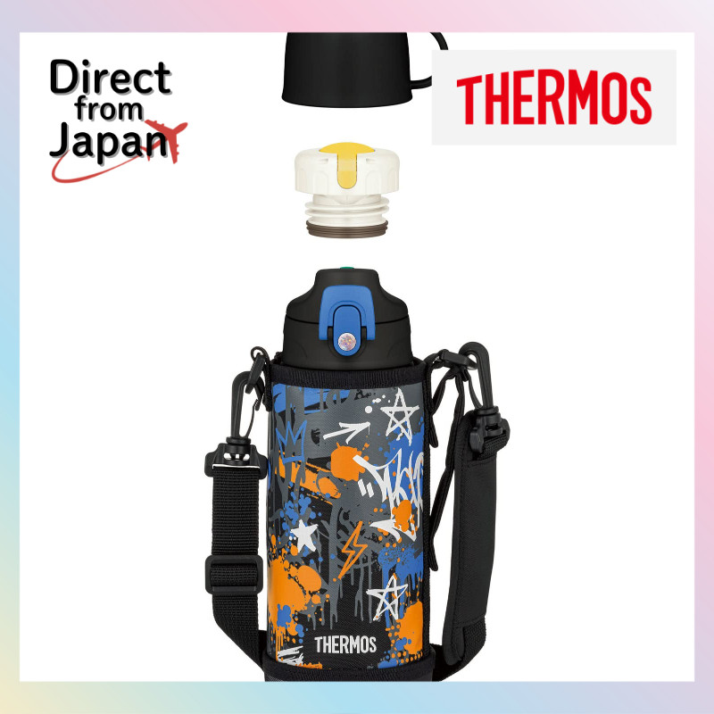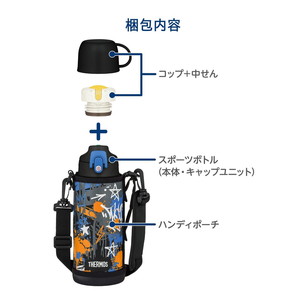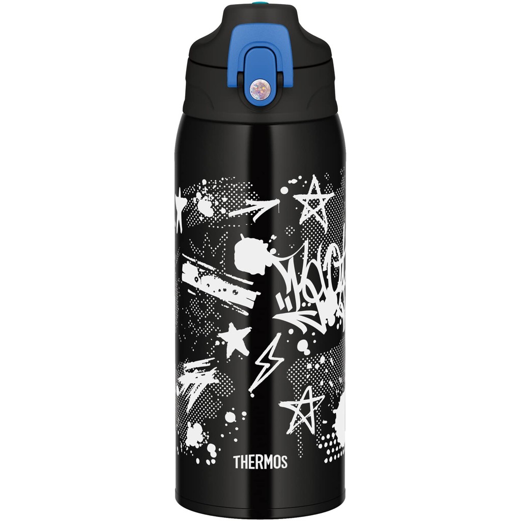 Thermos Vacuum Insulated 2-Way Bottle 0.8L/0.83L Black Blue with Direct Drinking and Cup Included for Kids, School Commute Model FJJ-801WF BK-BL【Direct from Japan】