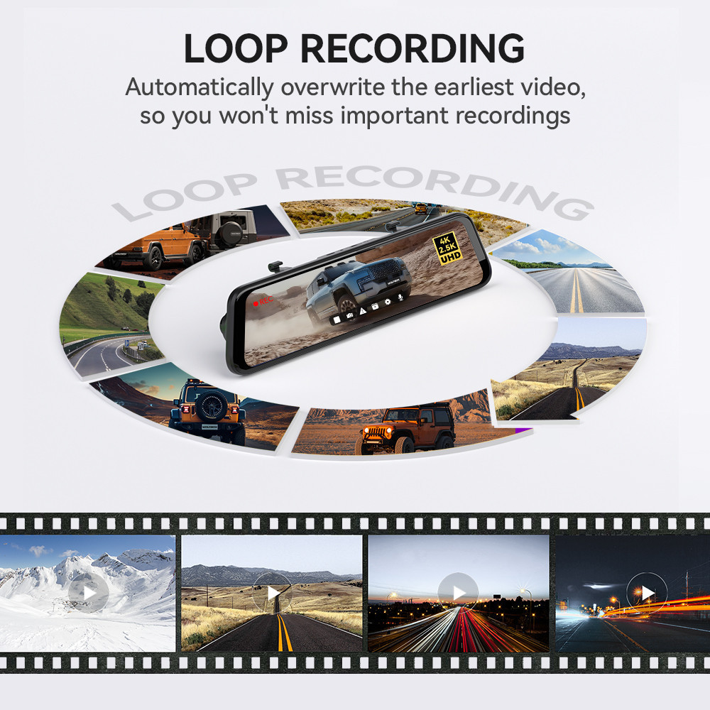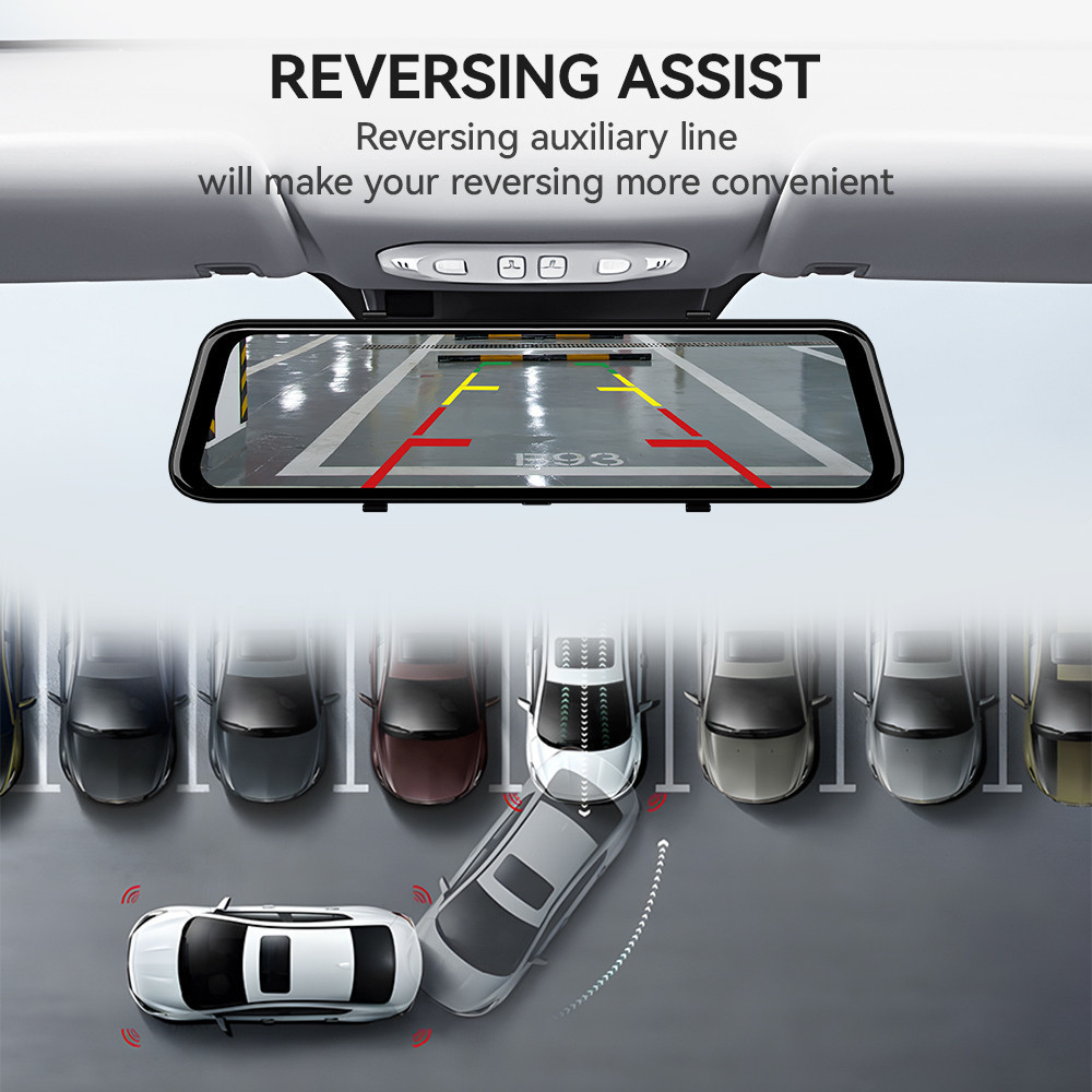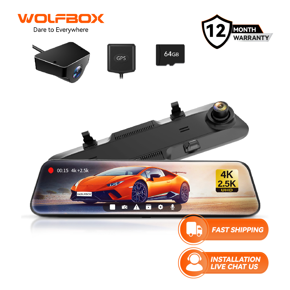 WOLFBOX G900 12'' 4K+2.5K Rearview Dash Cam, GPS, WDR, 170° FOV, Stream Media DVR