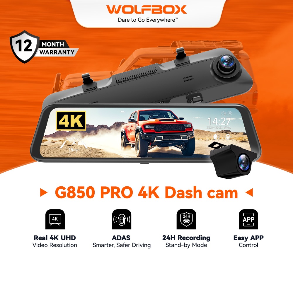 WOLFBOX G850 PRO 4K Mirror Dash Cam with ADAS and BSD, Smart Rear View Mirror with 5.8GHz WiFi, Voice Control, 12 inches Rear View Mirror Camera