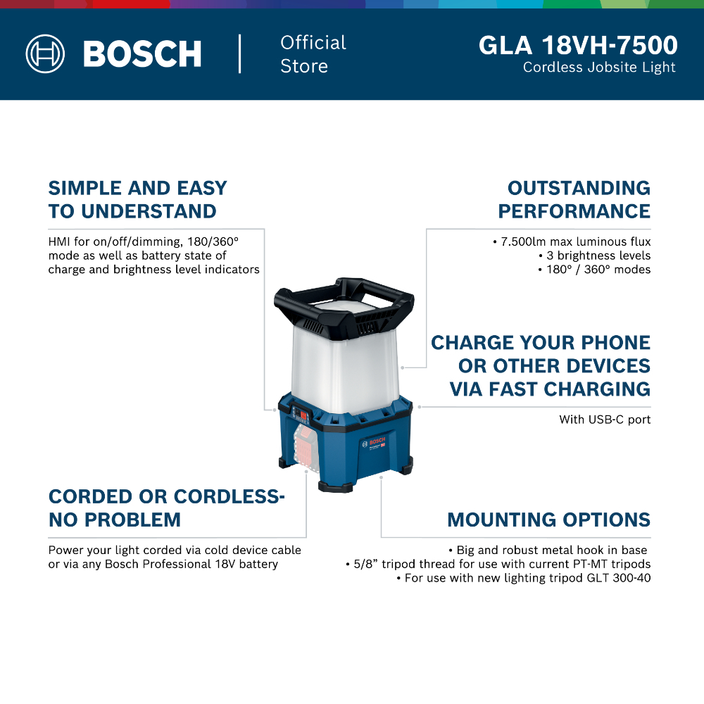 Bosch Power Tools GLA 18VH-7500 Professional Cordless Jobsite Light