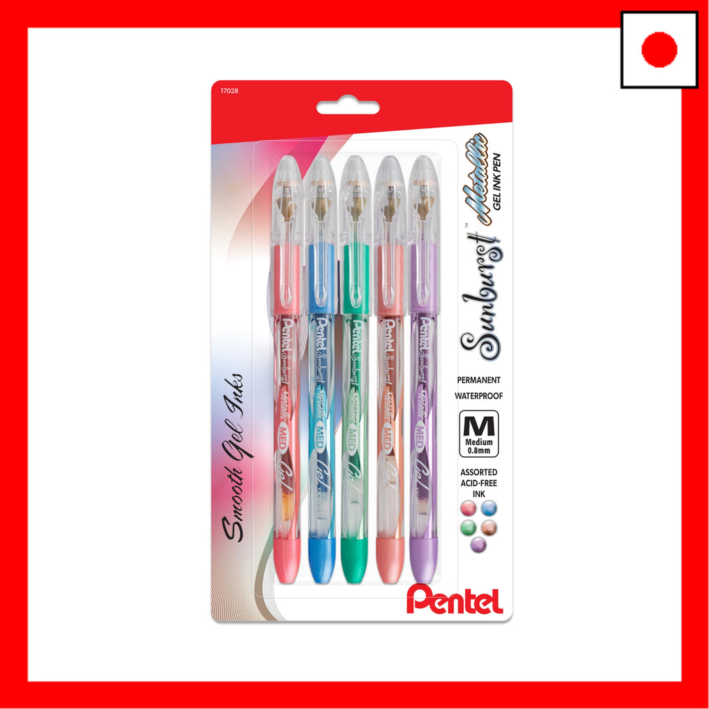 Pentel Sunburst Metallic Gel Pens, Medium Line, Permanent, Assorted Ink, 5-Pack (K908MBP5 M1) Assorted