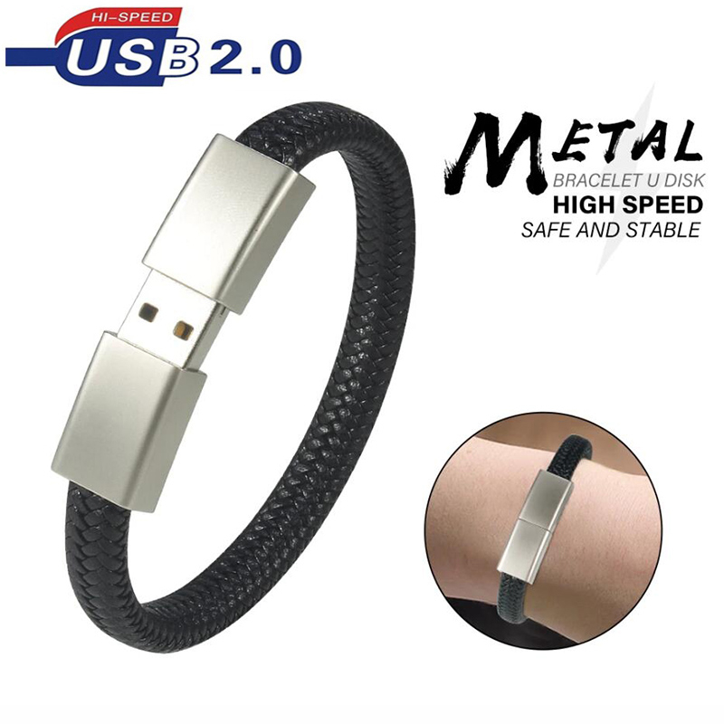 Bracelet USB2.0 Flash Drive 64GB 32GB 16GB Black Wristband Pen Drive Creative Gifts Memory Stick