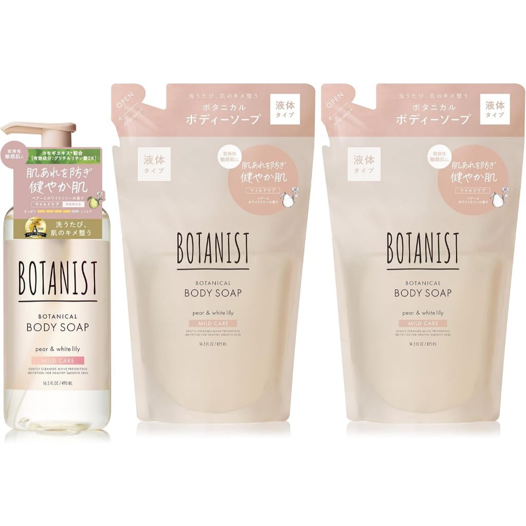 BOTANIST Authentic 3Piece Body Soap Set – Mild Care– 1 Bottle + 2 Refills Moisturizing Foam Cleanser