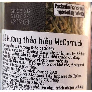 MCCORMICK -- ROSEMARY Jar 23g -- Rosemary Leaves Naturally Dried Rosemary Leaves
