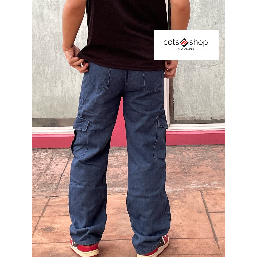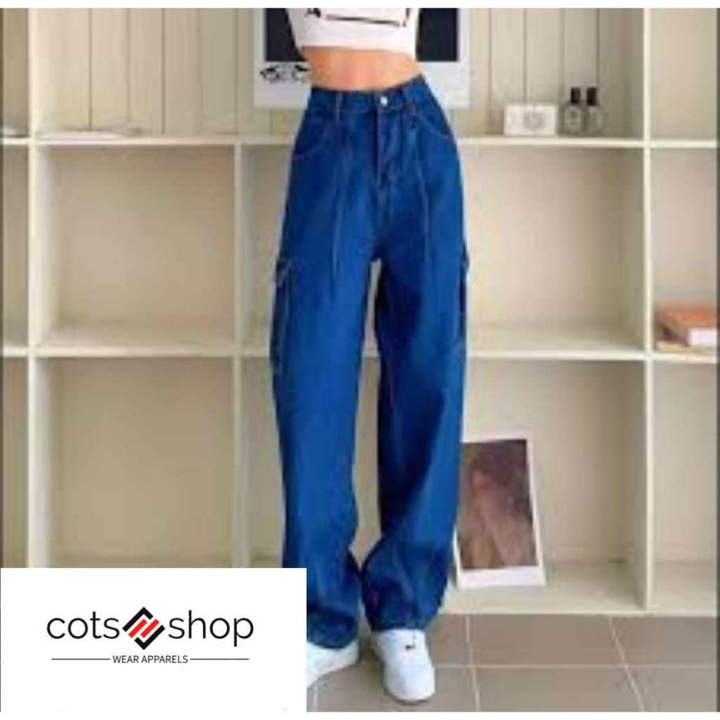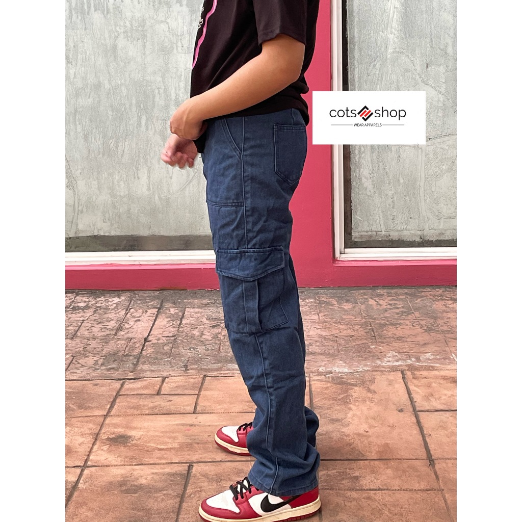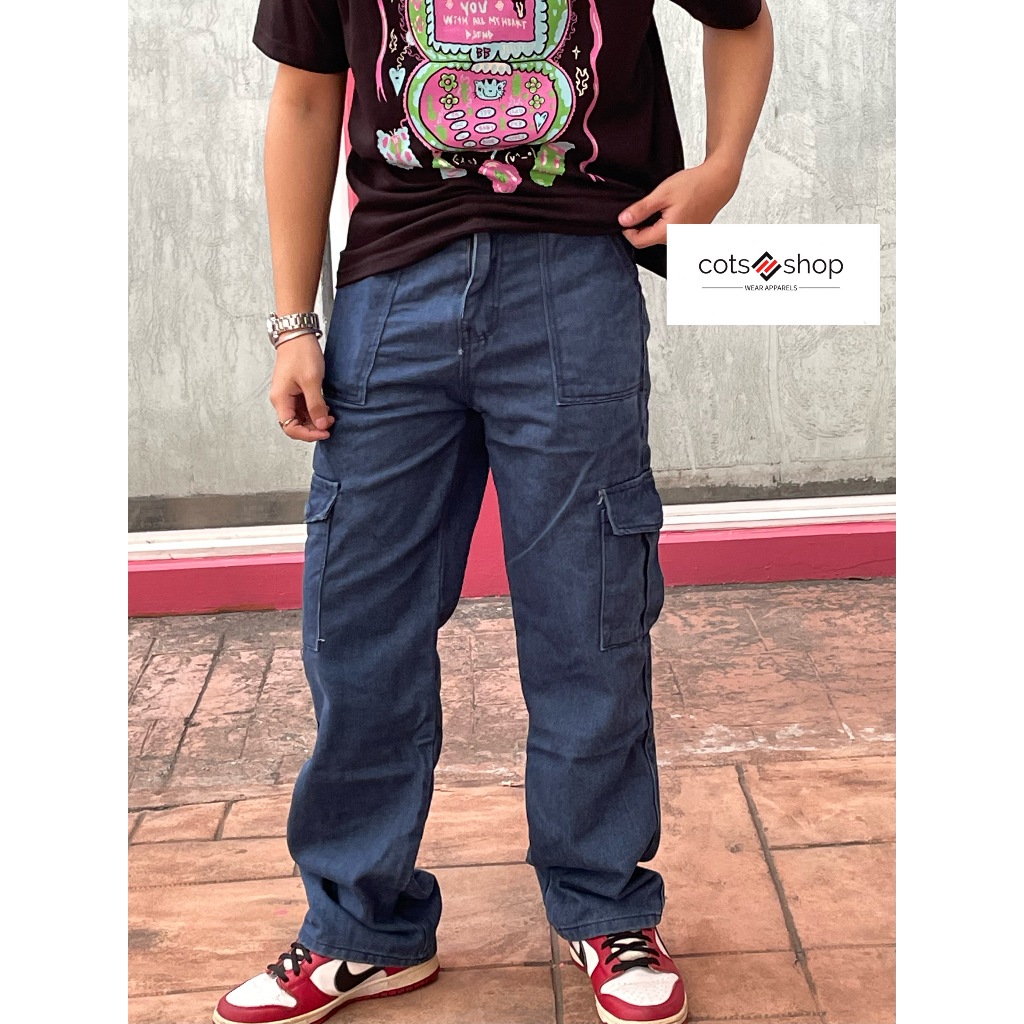 CARGO PANTS (UNISEX) WIDE LEG- DENIM BLUE COLOR, STRAIGHT CUT 919 JEANS