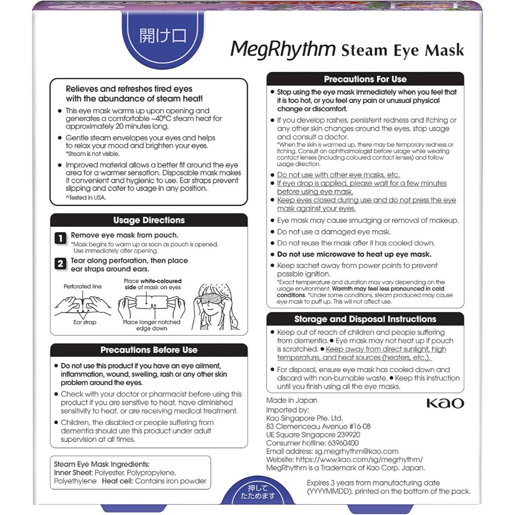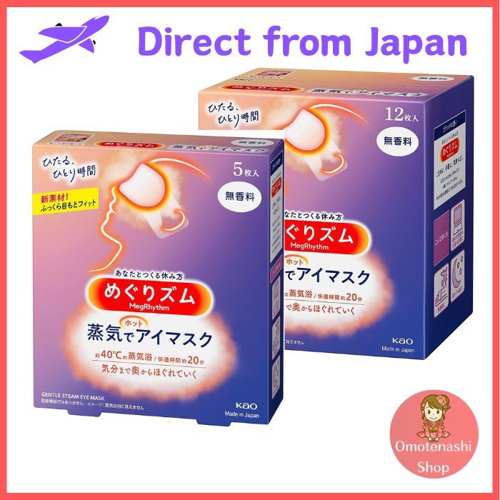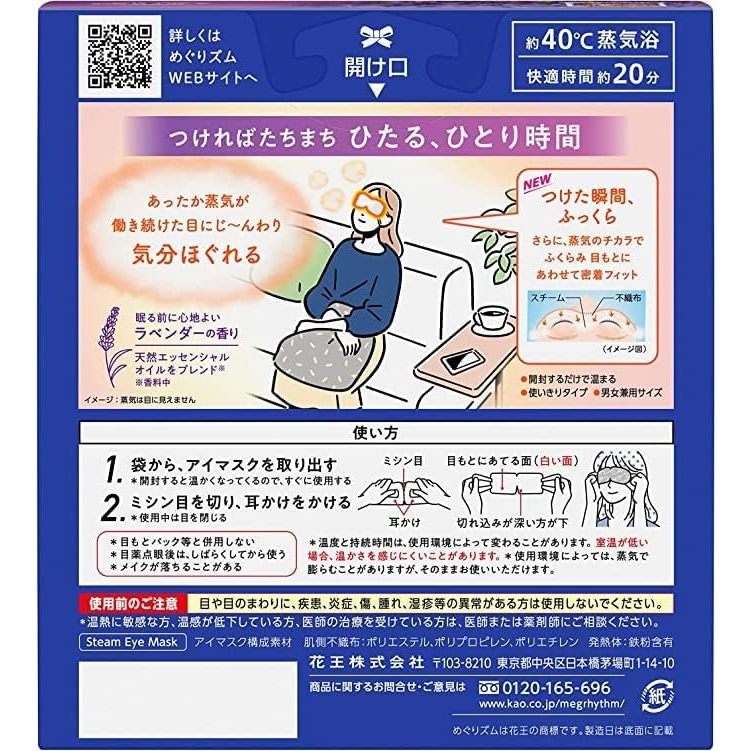 Kao Megurhythm Steam Hot Eye Mask (Fragrance Free, Lavender, Rose) [Direct from Japan]