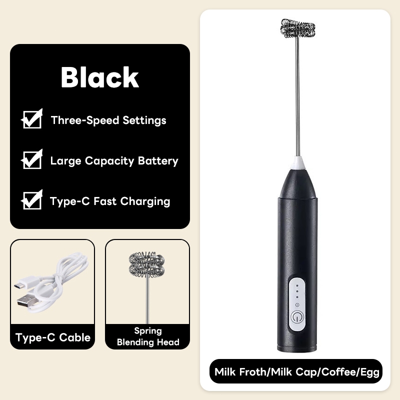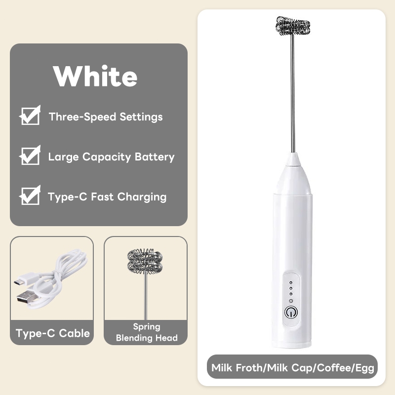 3-Speed Electric Milk Frother Coffee Blender Handheld Milk Foam Maker Whisk Mixer USB Rechargeable