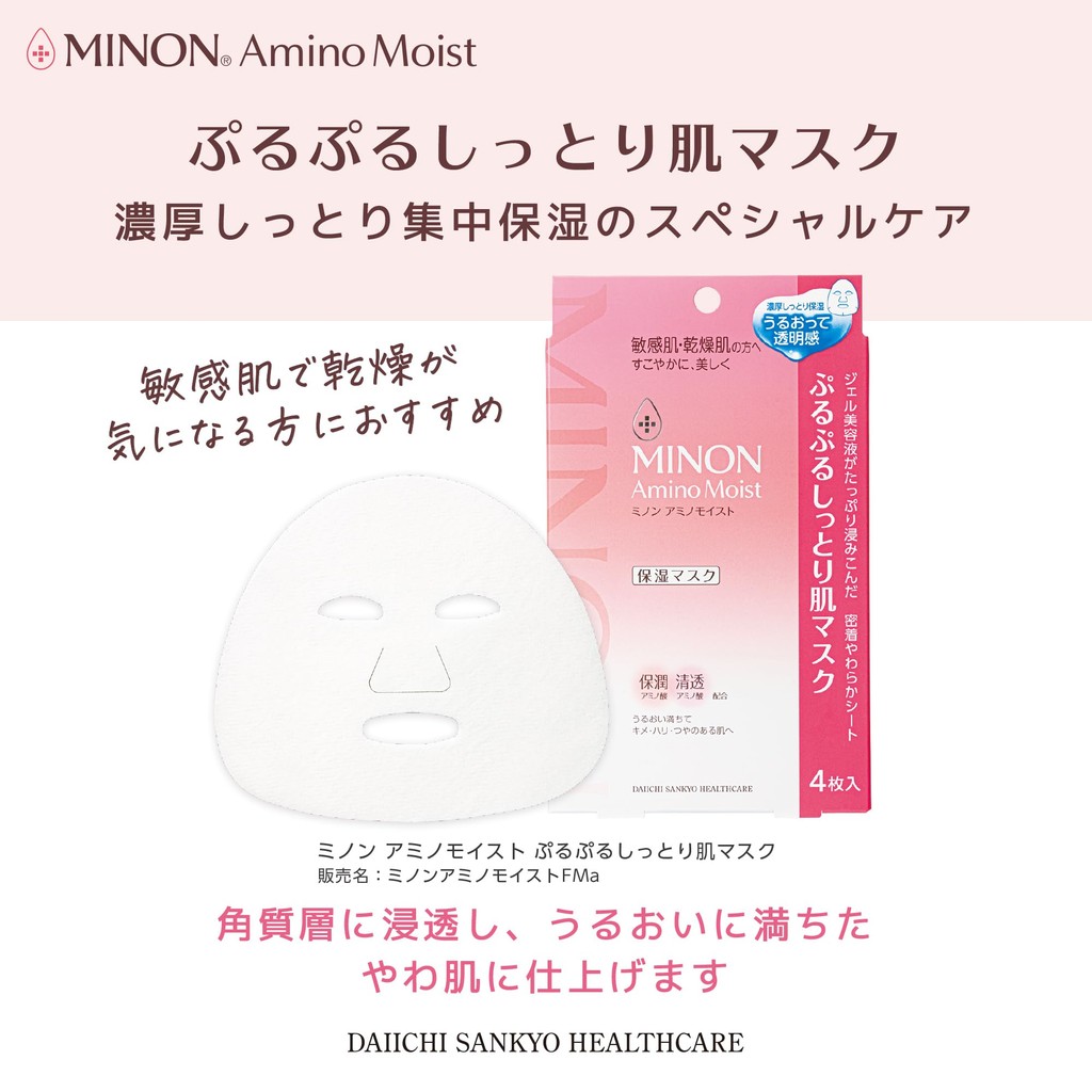 MINON Amino Moist Plump Hydrating Sheet Mask 4 pcs - Moisturizing Mask for Sensitive and Dry Skin, Enhances Radiance ❘ Direct from & Made in Japan