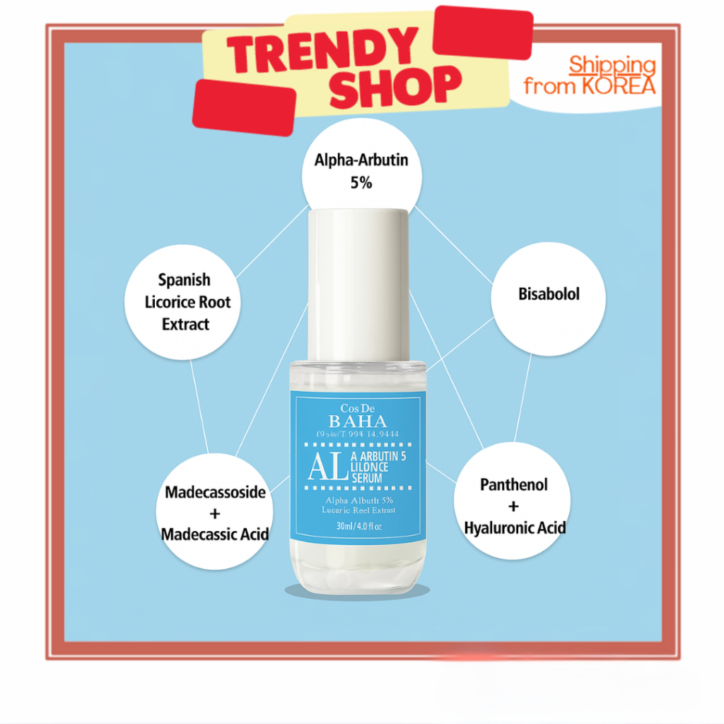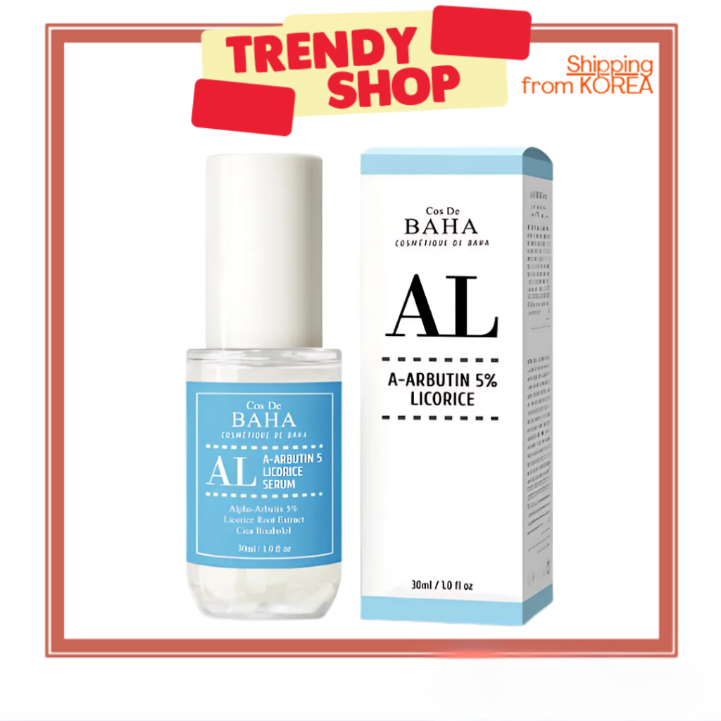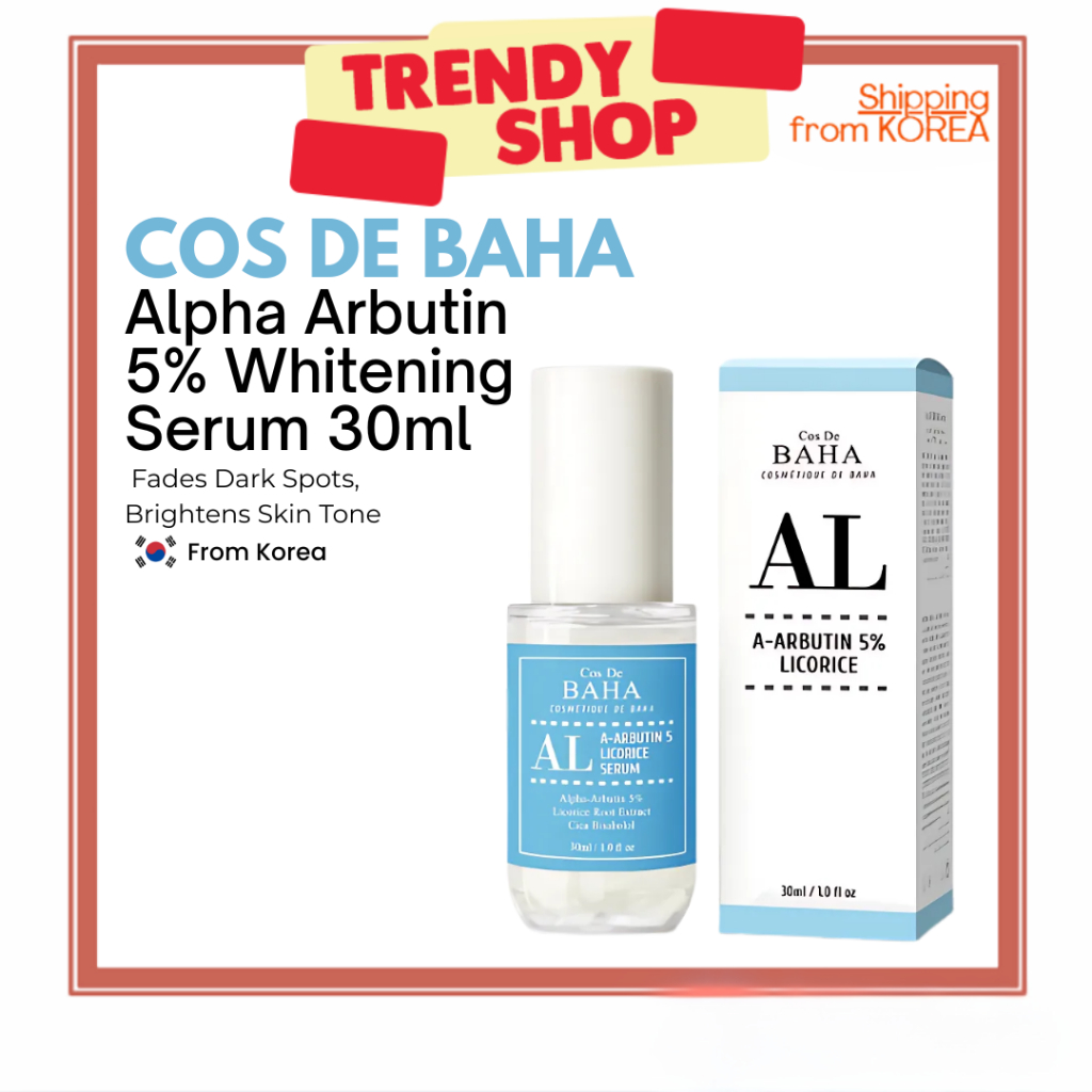 COS DE BAHA Alpha Arbutin 5% Whitening Serum 30ml – Licorice & Cica Blemish Care | Fades Dark Spots, Brightens Skin Tone