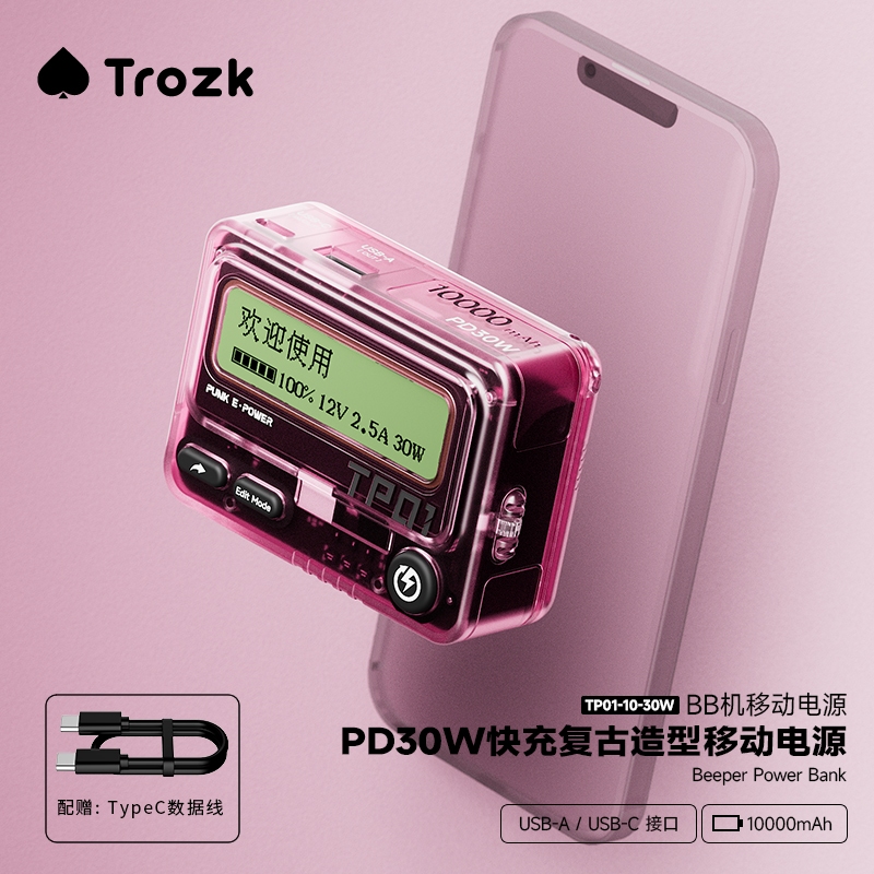 TROZK BB Phone Fast Charge pd30w Moving Large Capacity Small Portable 1,000mAh typec Output
