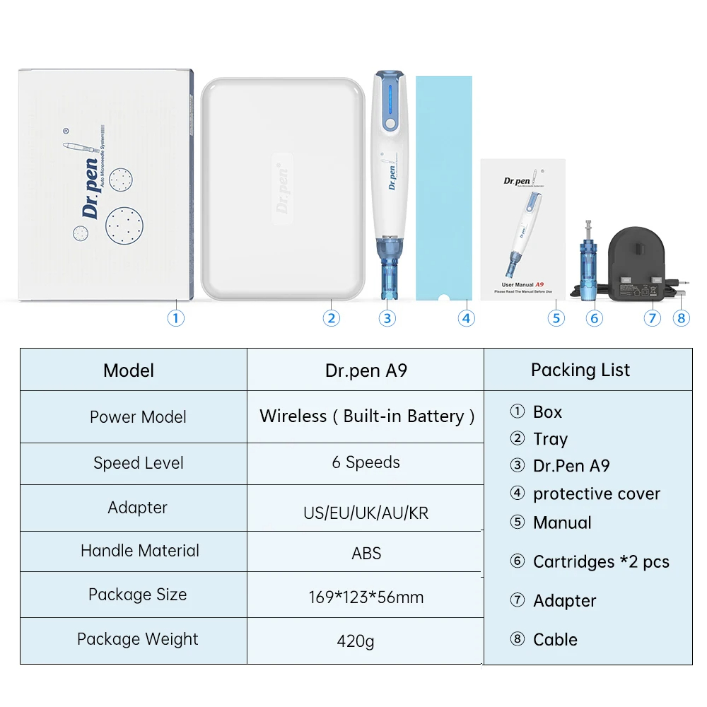 Original Dr.pen A9 Microneedling Wireless Derma Stamp Professional Microneedle Pen With 22pcs Cartridges Skin Care Kits