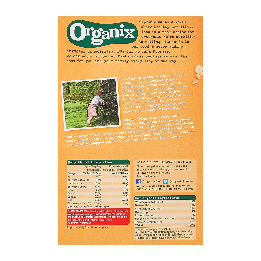 Organix Baby Food Banana, Peach & Apple Muesli 200g [10 mos+] (Organic, No Added Sugar)