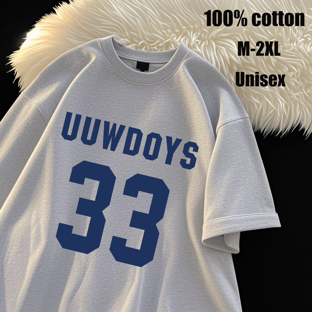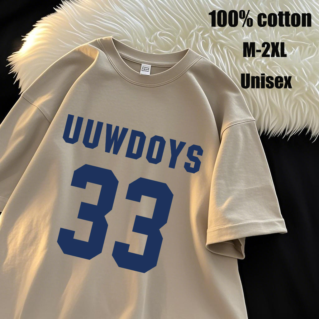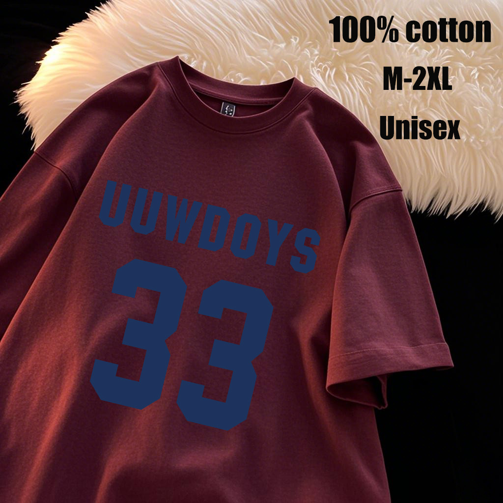 American retro jersey style No. 33 printed cotton T-shirt for men and women oversized loose tops