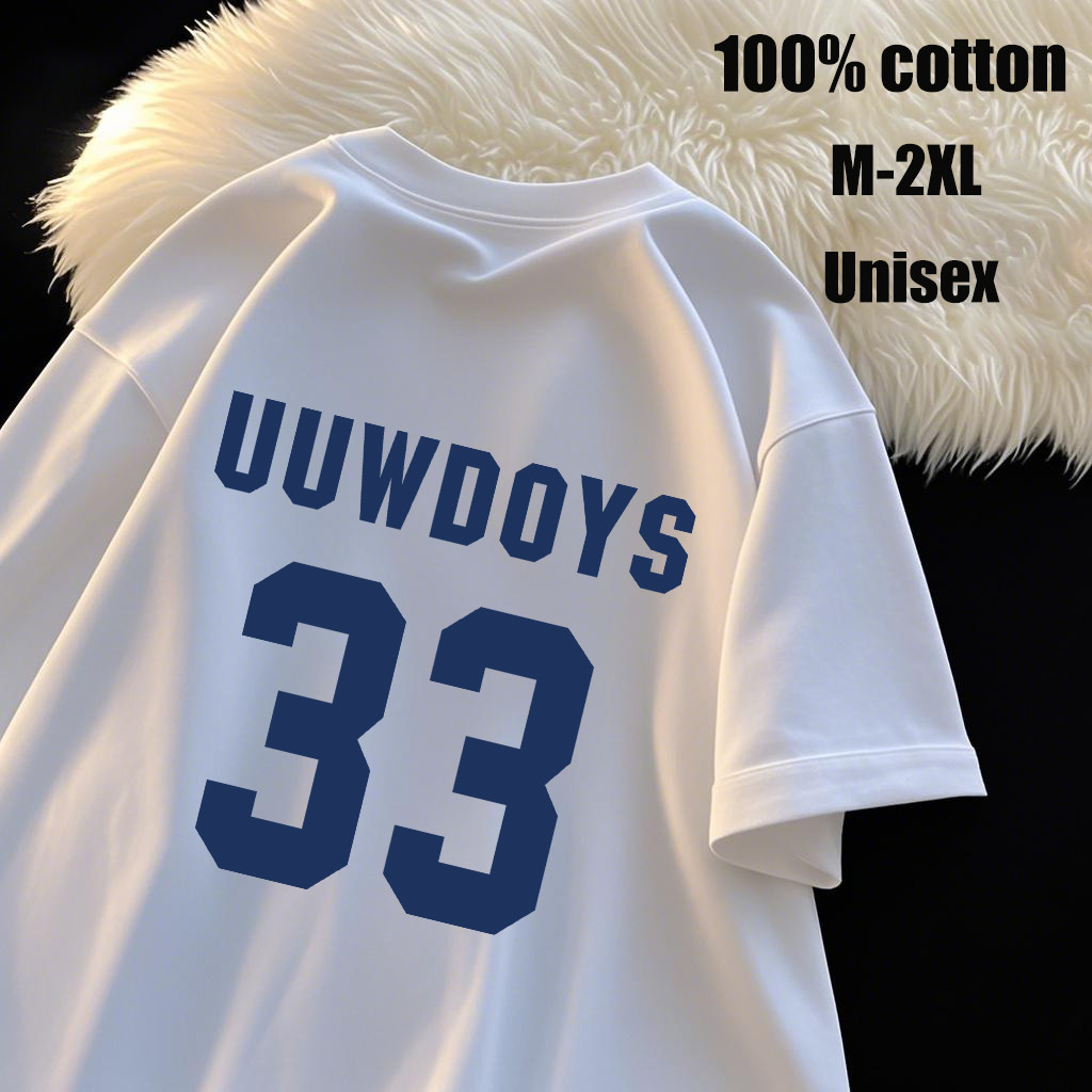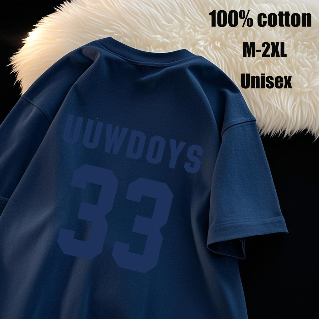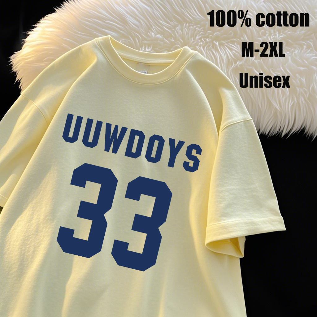American retro jersey style No. 33 printed cotton T-shirt for men and women oversized loose tops
