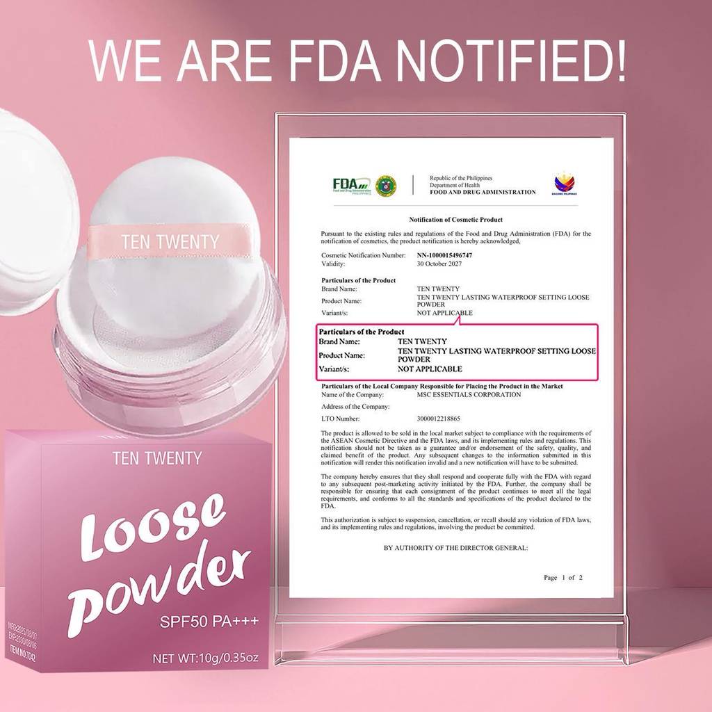 TEN TWENTY Setting Loose Powder Long Lasting Oil Control Matte Waterproof SPF50 PA++ Flawless Powder