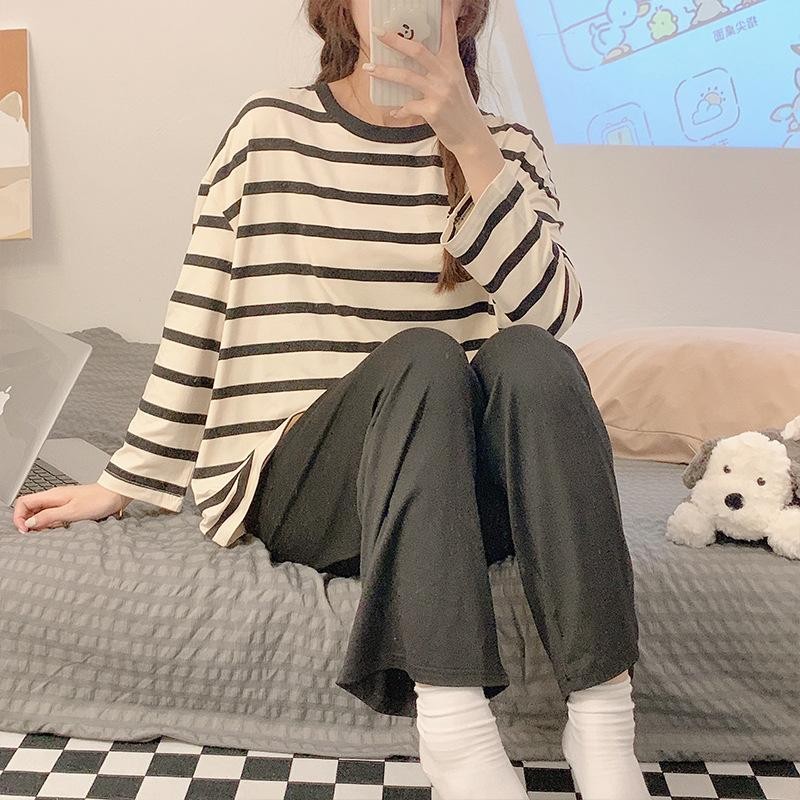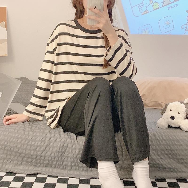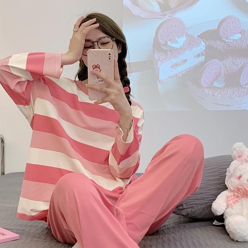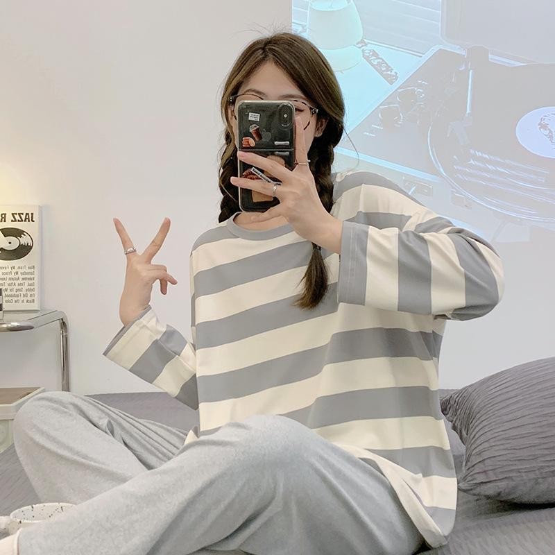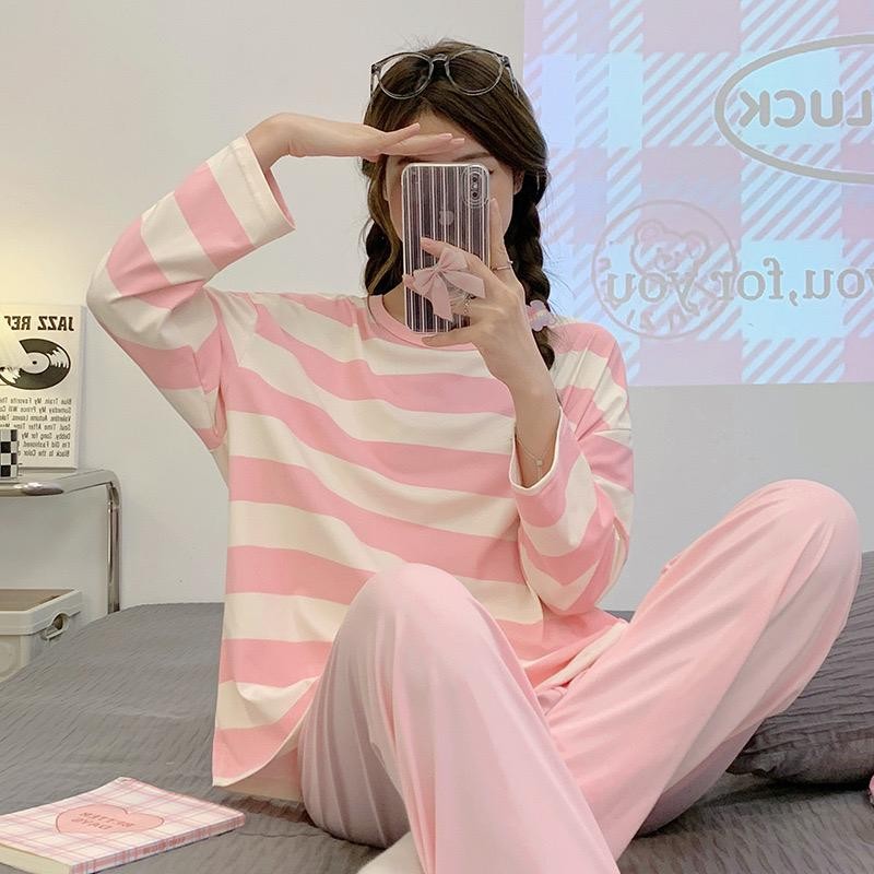 M-XXL Terno Pajama for Woman Soft Milk Silk Feel Set Long Sleeve Long Pants Plus Size Nightwear