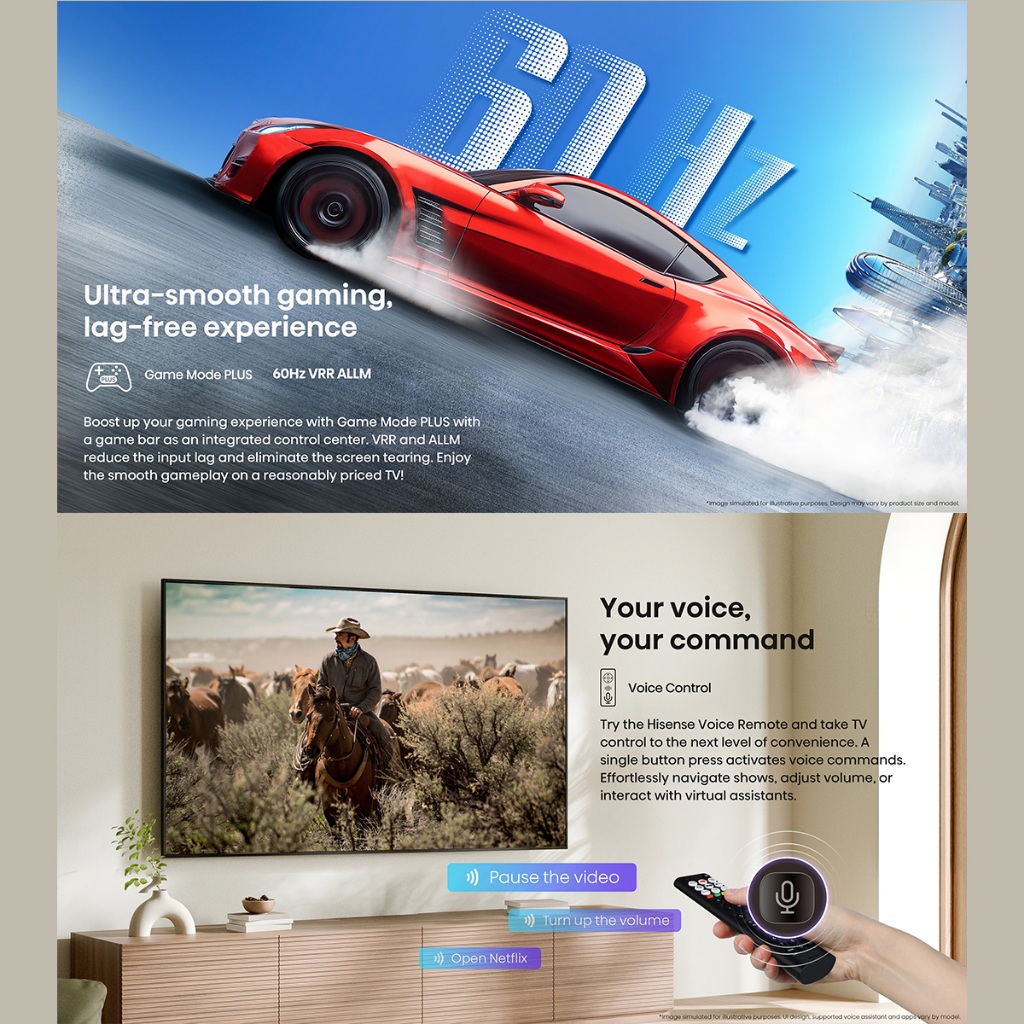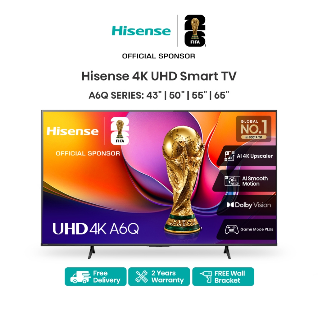 Hisense 43/50/65 inches 4K UHD Smart TV (A6Q Series) with Free Wall Bracket