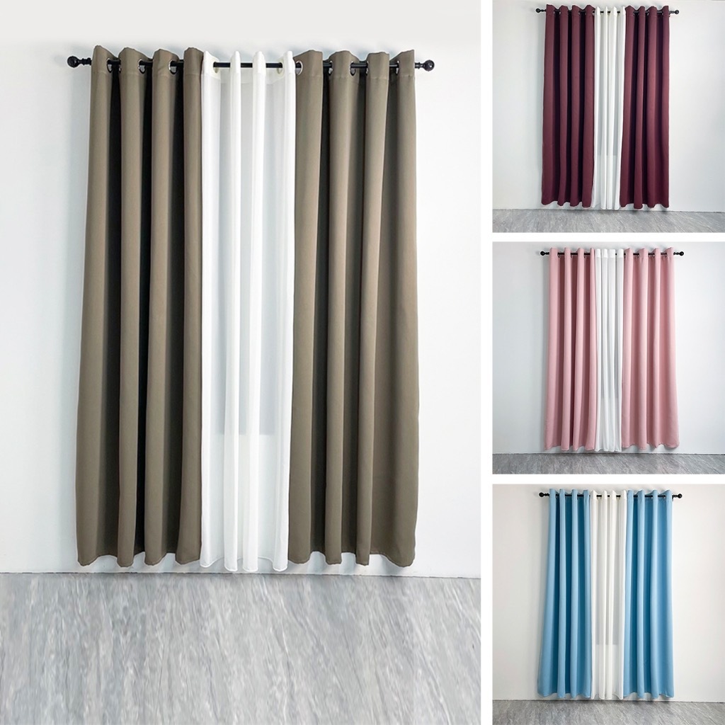 COD 6ft 7ft 8ft Blackout curtain for window 3 in 1 Set Aesthetic Ring makapal Katrina Fabric