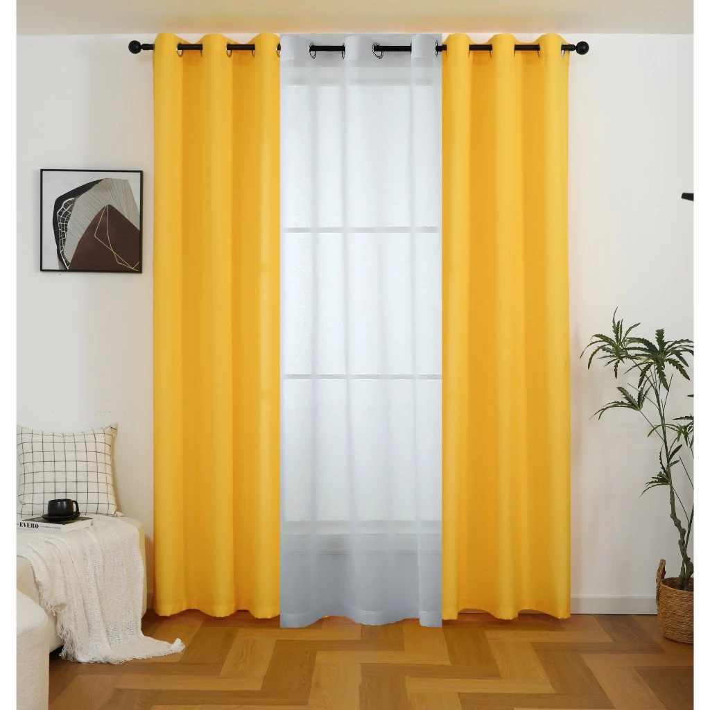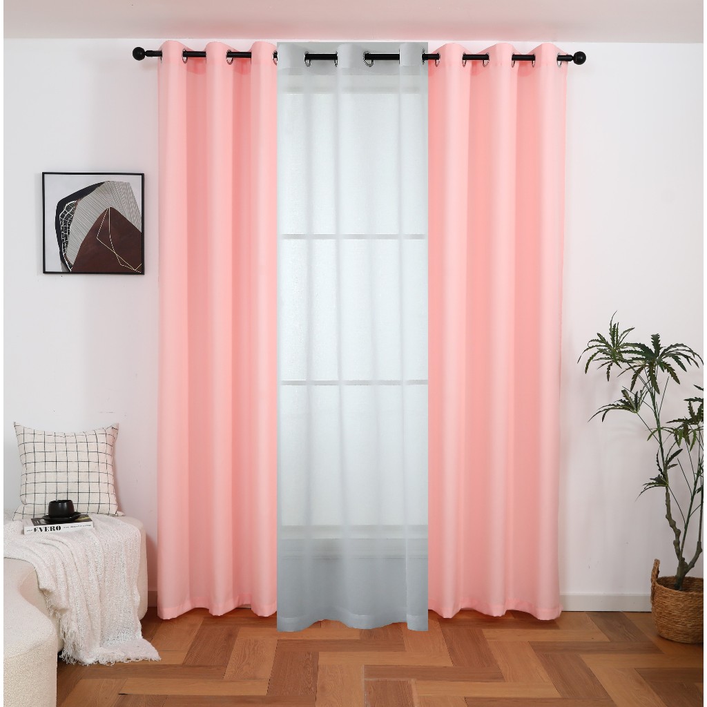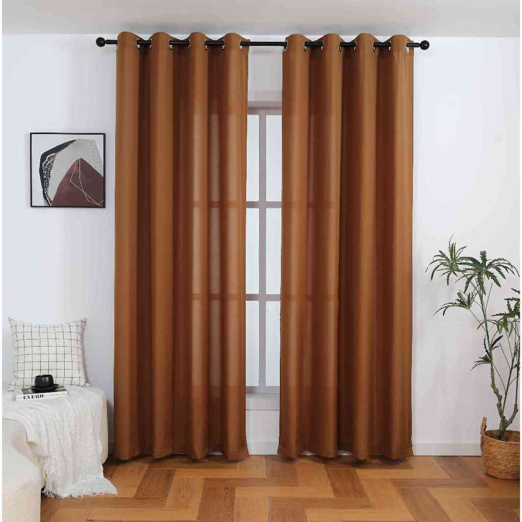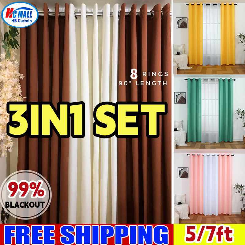 【Hot】6ft 7ft 8ft 3 IN 1 Set Blackout Curtain For Window With 8 Ring- (Semi Black Out) Katrina Fabric