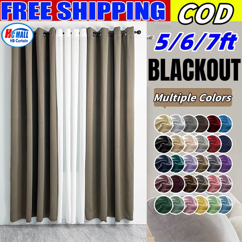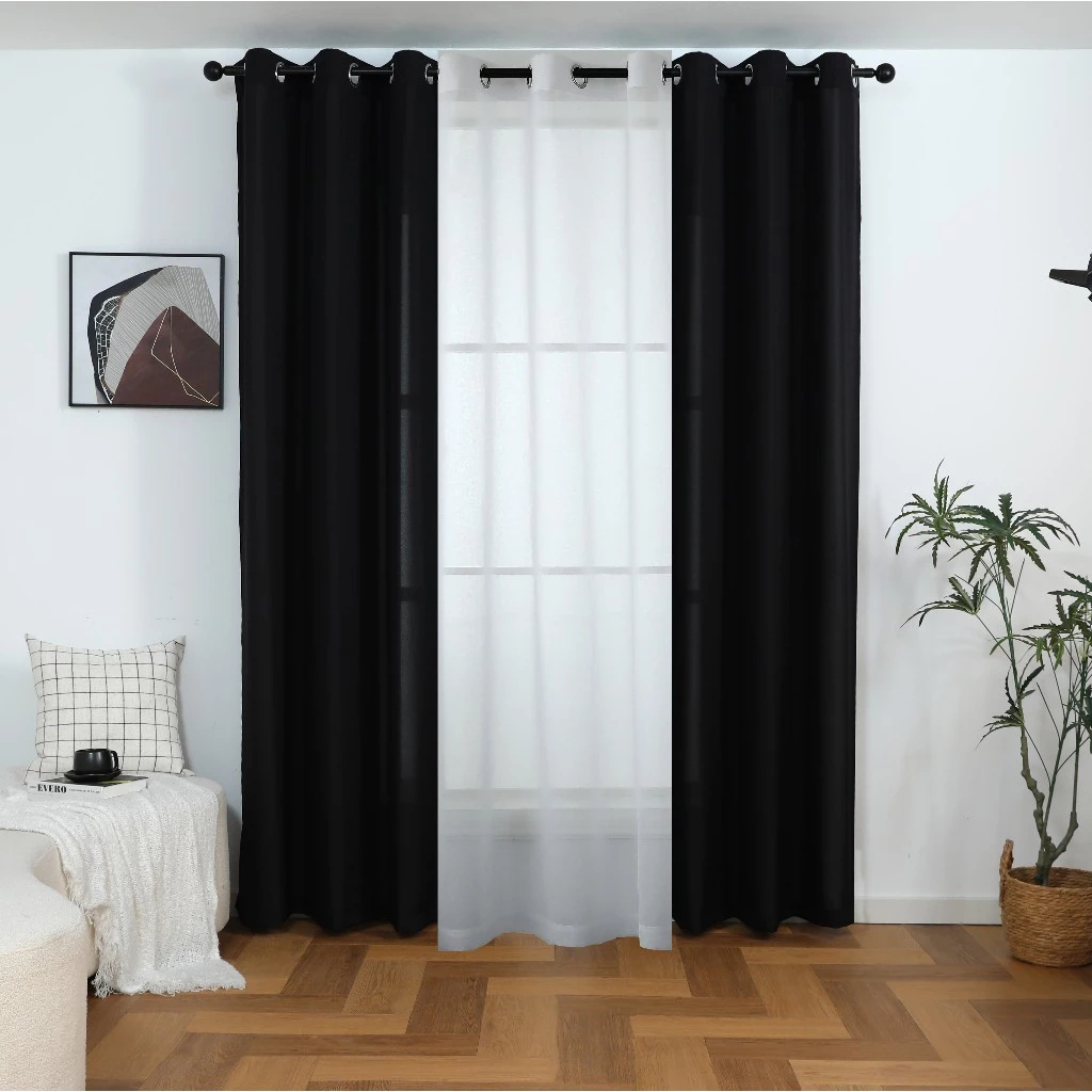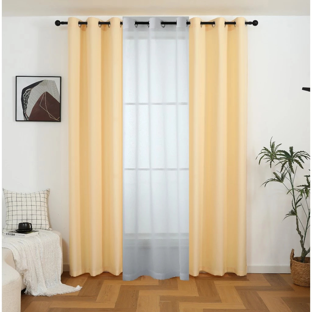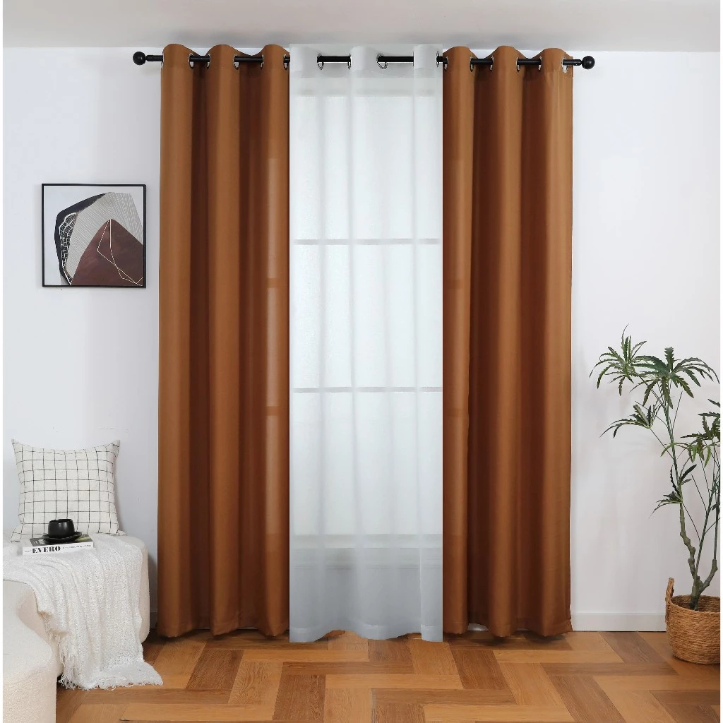 【Hot】6ft 7ft 8ft 3 IN 1 Set Blackout Curtain For Window With 8 Ring- (Semi Black Out) Katrina Fabric