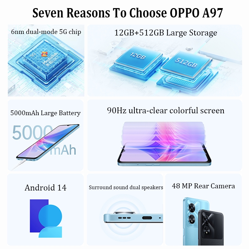 A97 5G 12GB+512GB Original |Mediatek Dimensity 810 |5000 mAh Fast Charging |Android Coloros 14
