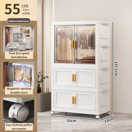 Foldable Large Capacity Clothing Storage Cabinet Easy to Install Home Organizer Dustproof Wardrobe
