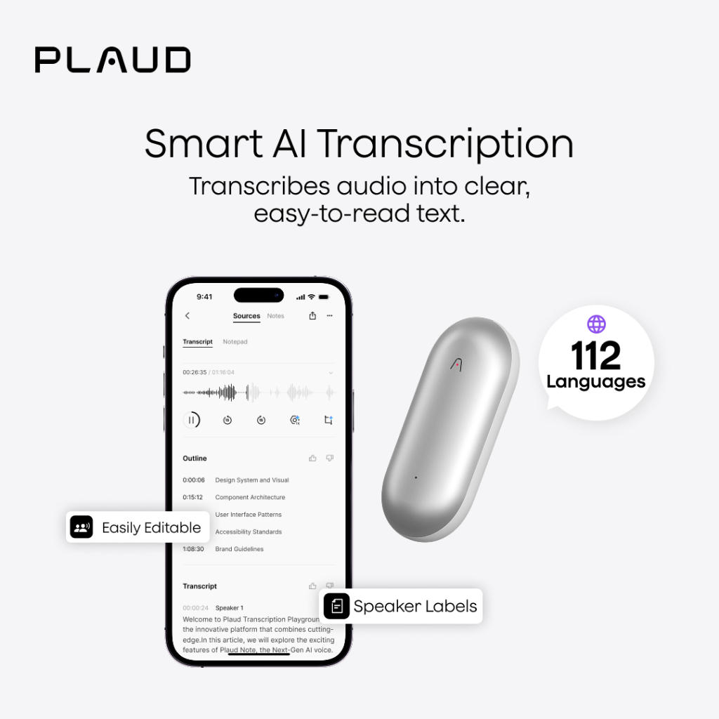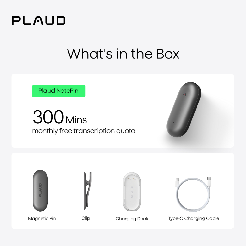 [Official] Plaud NotePin Wearable AI Voice Recorder, AI Note Taker, Smart Transcription & Summarization