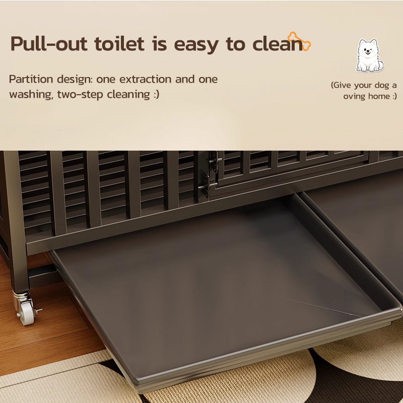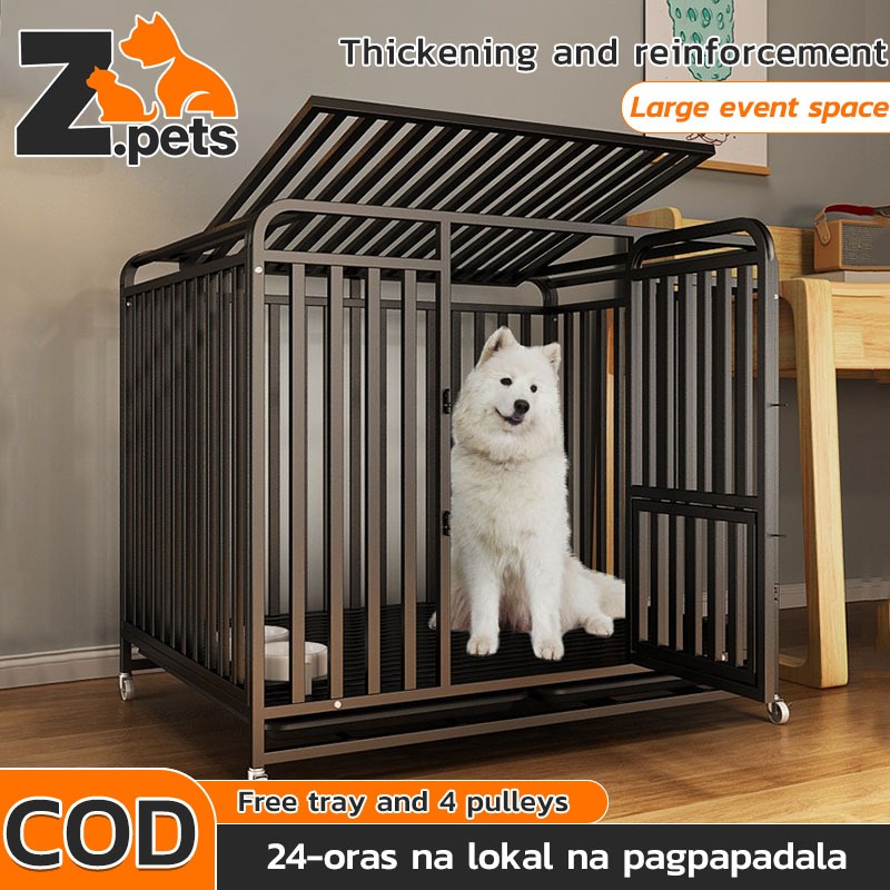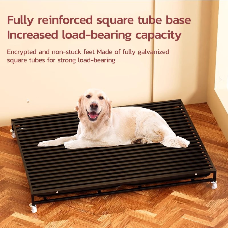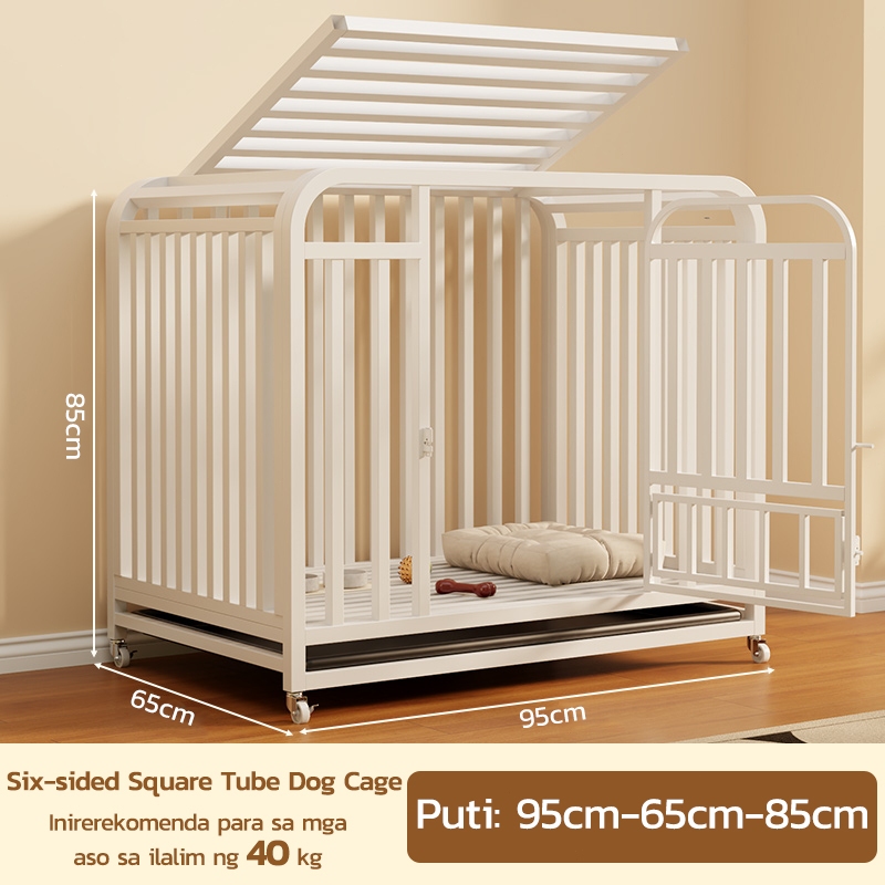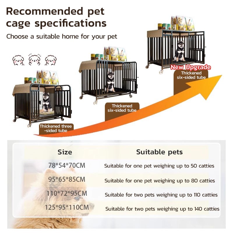 Thickened Large Dog Cage Square Tube Stainless Portable Mobile Pet Cage with 4 Wheels