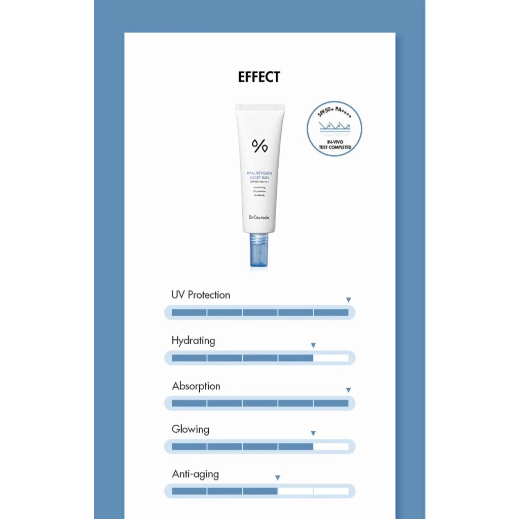 Dr.Ceuracle Hyal Sunscreen SPF50+ PA++++ | 6-Hyaluronic Complex & Fructan | 72H Hydration | Sensitive Skin 50ml