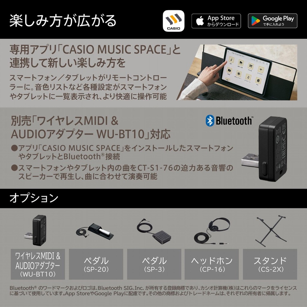 Casio / Electronic Keyboard, CasioTone, CT-S1-76, White or Black / 76-Key Keyboard [Direct from Japan]