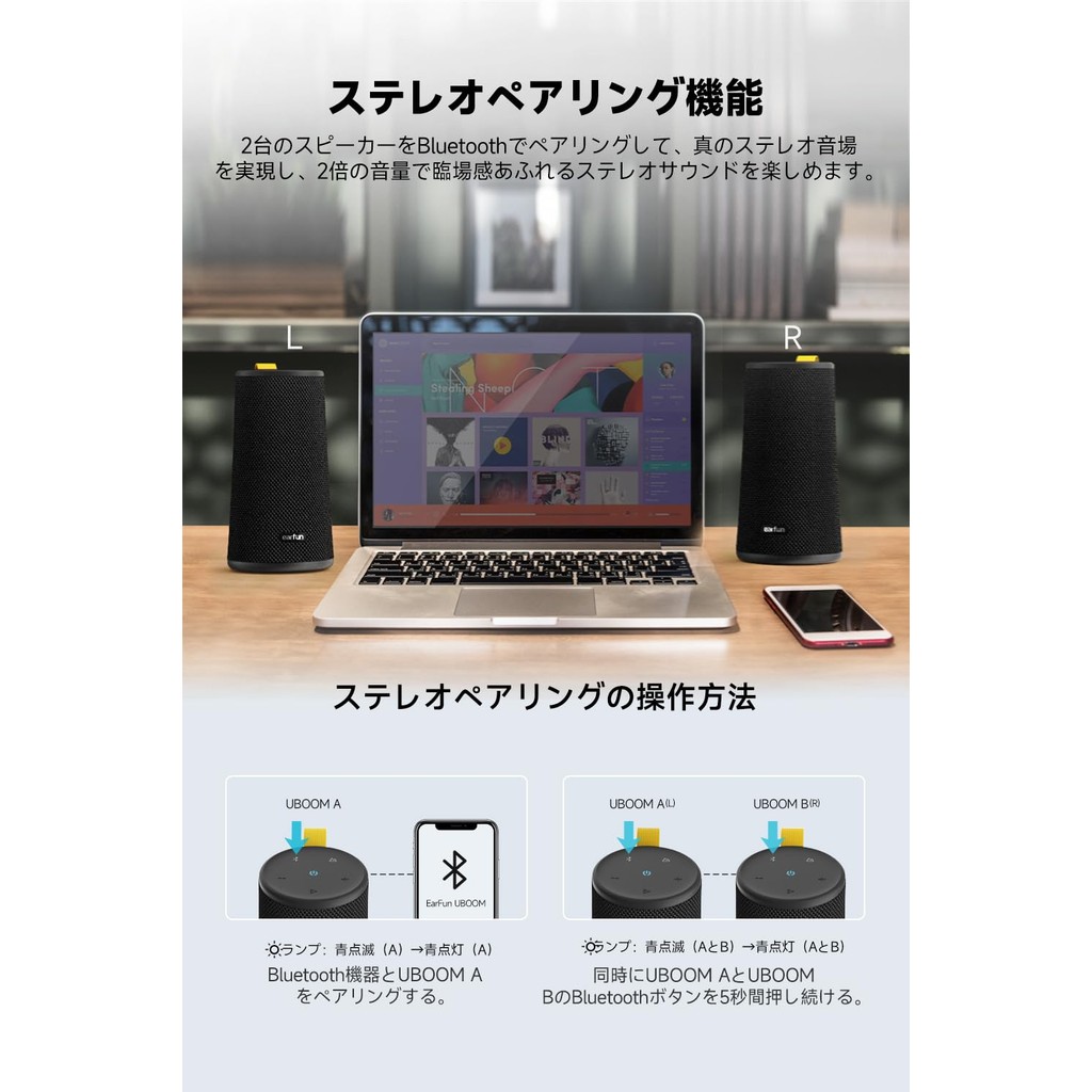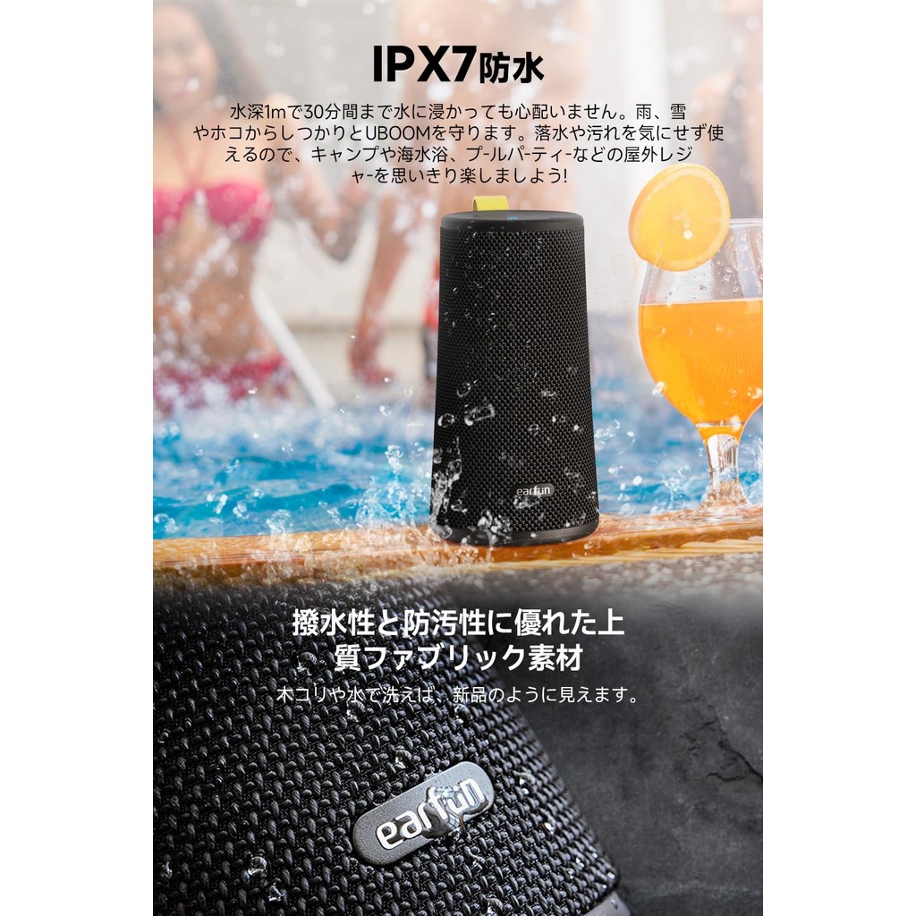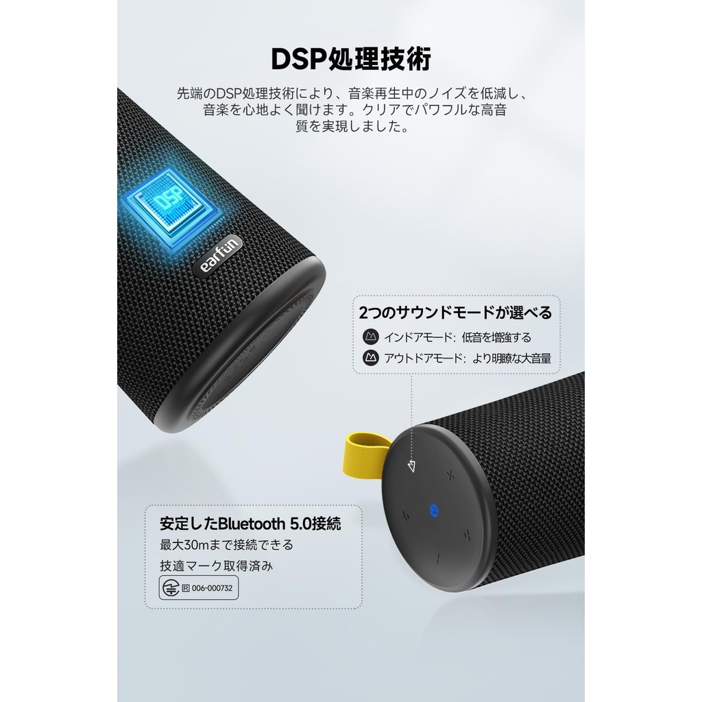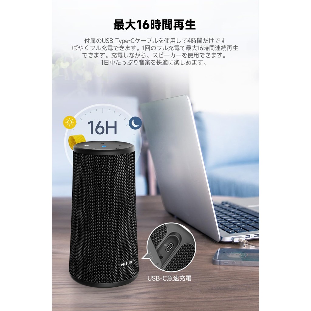 EarFun / UBOOM, Wireless Speaker, 24W / 360° Sound, Bluetooth 5.0, Enhanced Bass, 16 Hours Playback, IPX7 Waterproof / Dual Passive Radiators/DSP Processing/Stereo Pairing / USB-C Charging, Indoor & Outdoor Sound Mode, Black [Direct from Japan]
