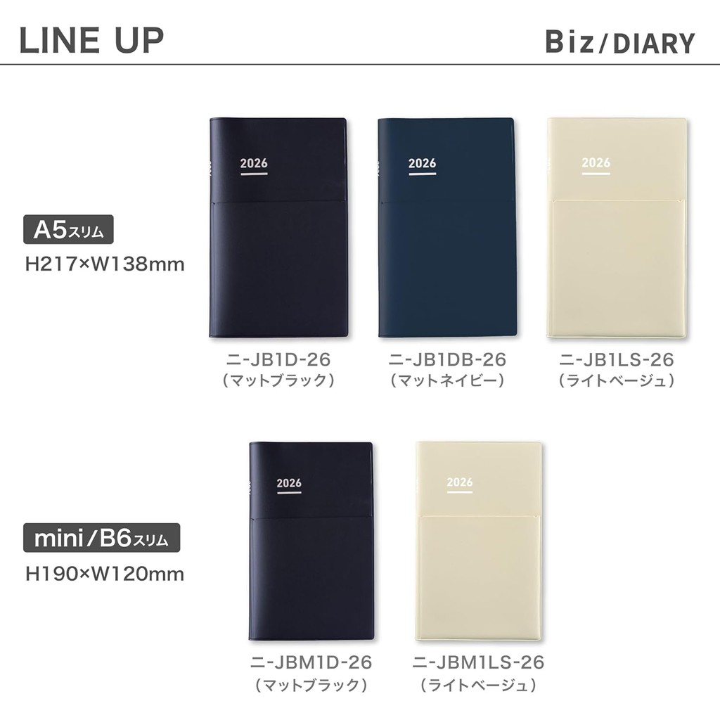 Kokuyo Jibun Techo Biz 2026 Monthly Planner A5/B6 Slim
