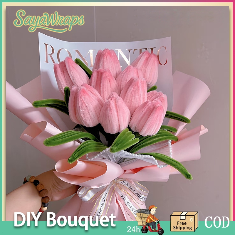 Fuzzy wire finished bouquet material package handmade DIY hair root tulip super dense color