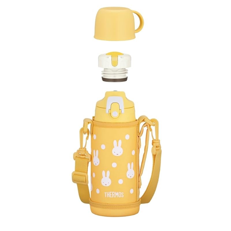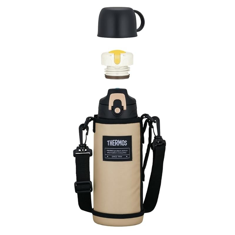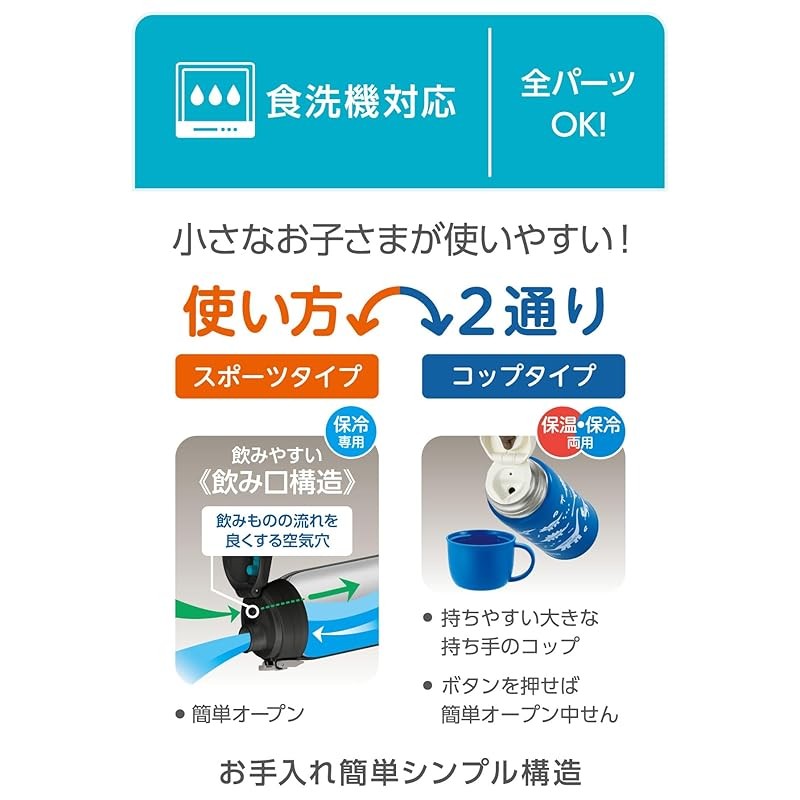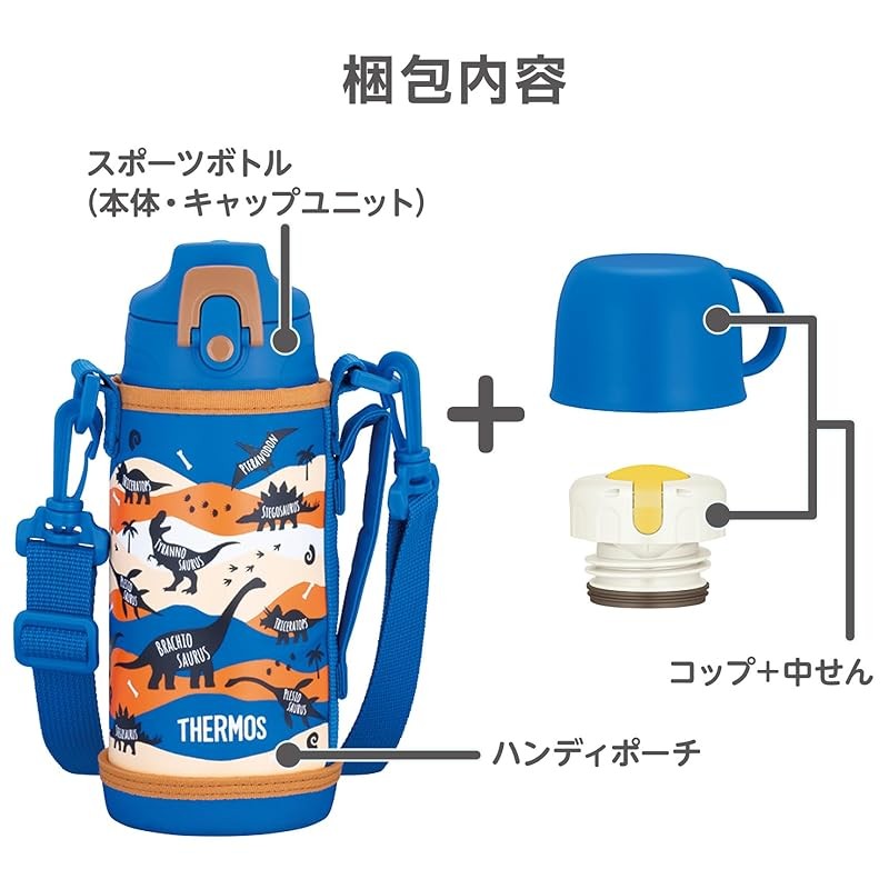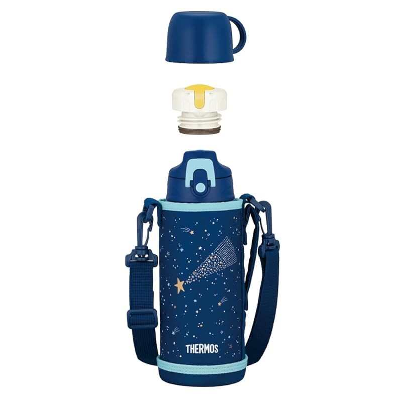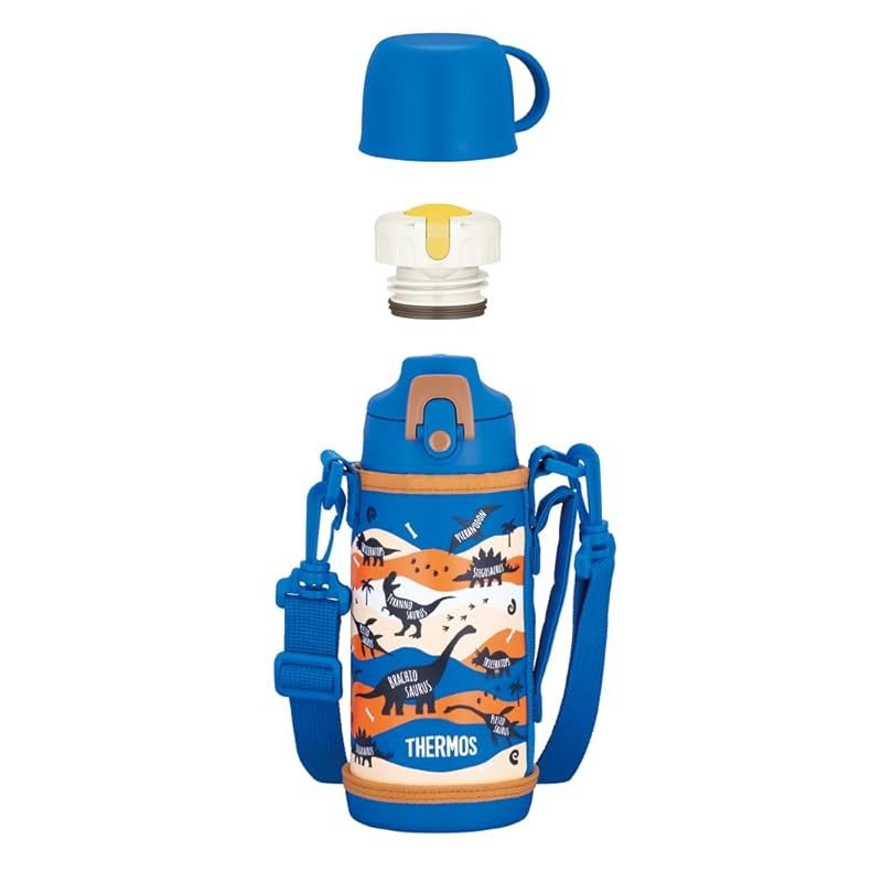 Thermos Water Bottle Vacuum Insulated 2-Way Bottle 0.6L/0.63L Blue Brown with Direct Drinking Cup for Children for School FJJ-602WF BLBW