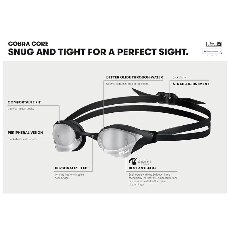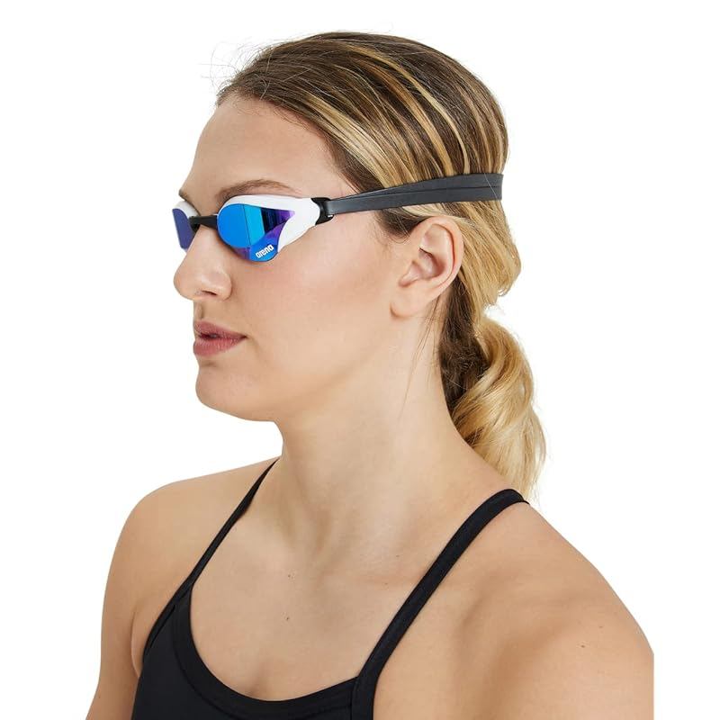 Arena Cobra Core Swim Goggles for Men and Women, Blue-White, Swipe Anti-Fog Mirror Lens (New)