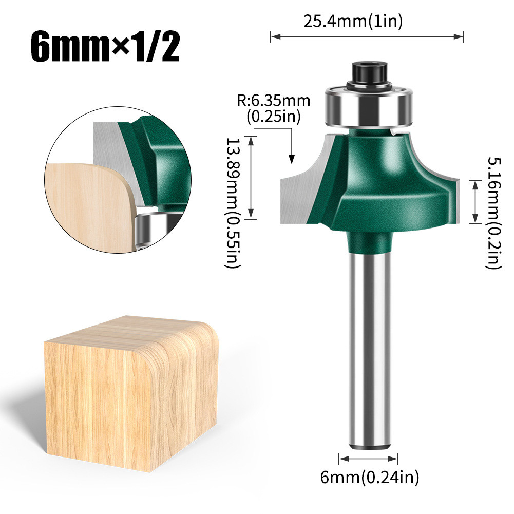 Roundover Router Bit Set 1/4 Shank, 4pcs Carbide Corner Rounding Bit for Trimming and Chamfering, Radius Edge Bit for Woodworking, Fits Hand Trimmer and Router
