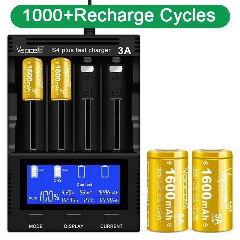 Original 3 65 Vapcell H16 INR 18350 1600Mah 5A 3.7V Li-Ion Battery Highest Capacity Rechargable