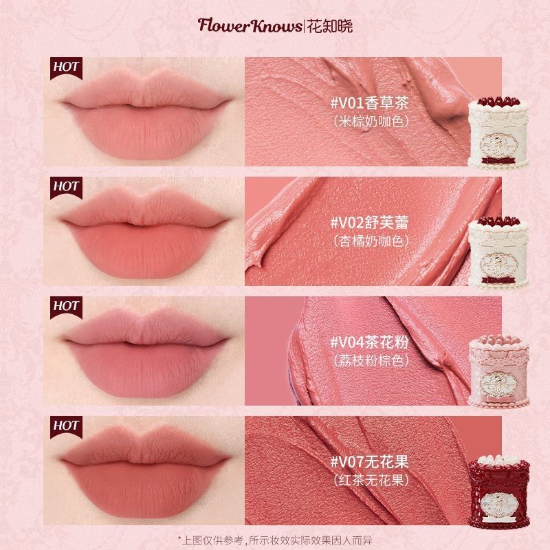 FLOWER KNOWS Lip Cream Strawberry Cupid Cake Velvet Matte Soft Mist Delicate Smooth And Thin