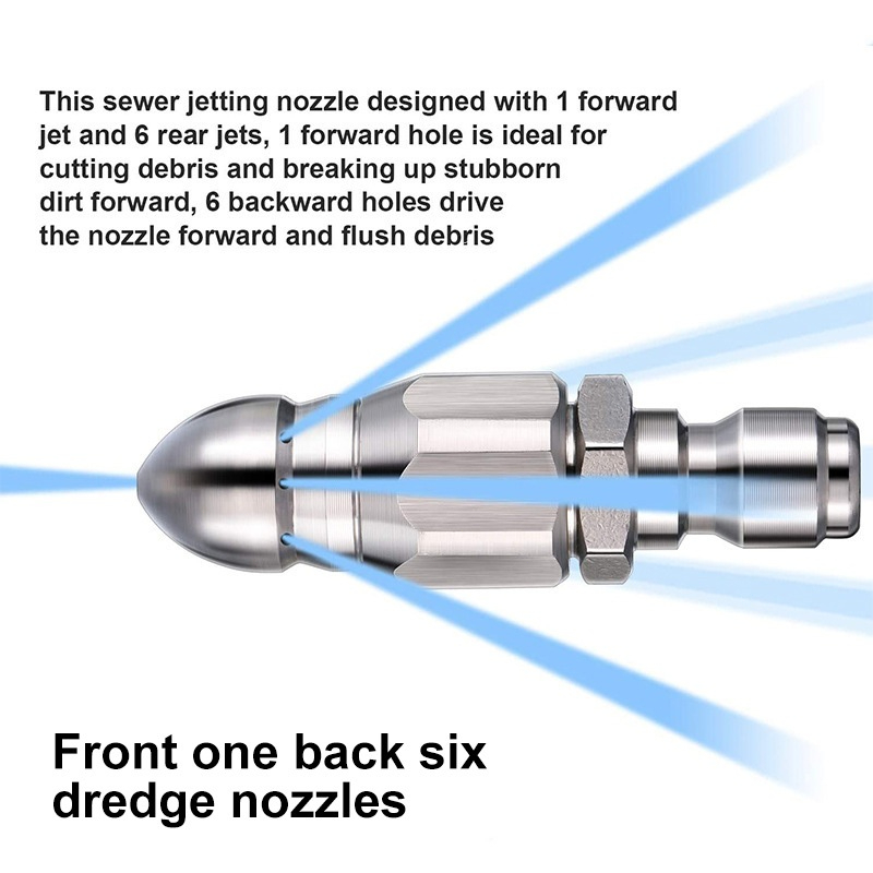 Sewer Jetter Nozzle 1/4'' Sewer Dredging Cleaning Nozzle High Pressure Drain Pipe Cleaning Nozzle