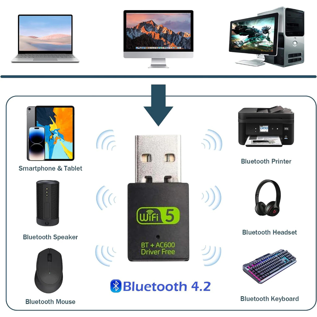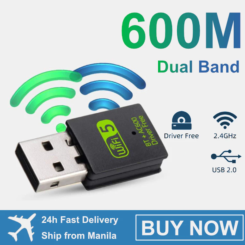 Dual Band USB Adapter 600mbps 2.4/5ghz Wi-Fi Dongle Wireless Receiver
