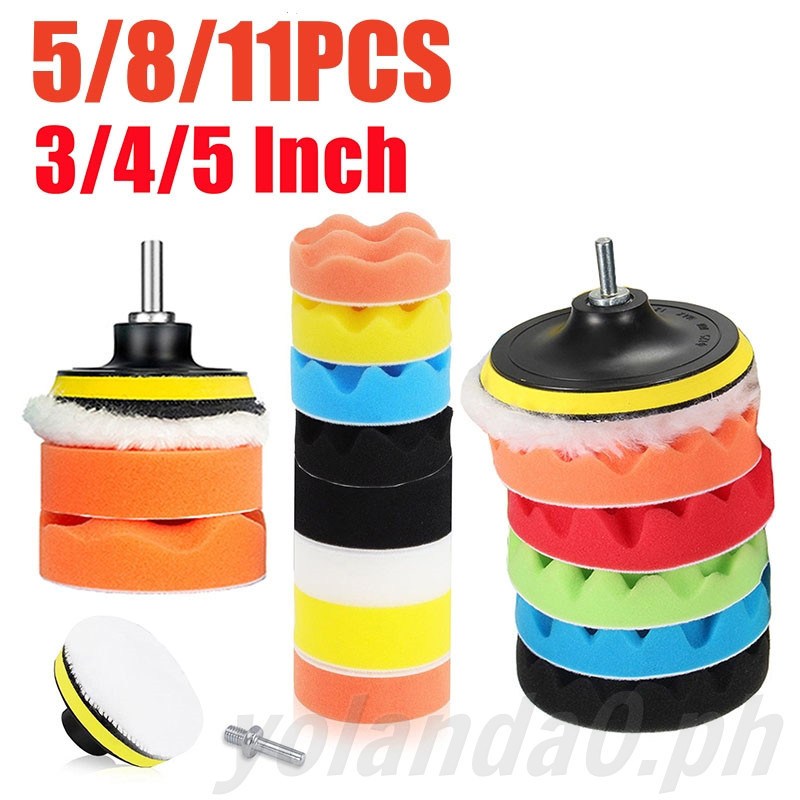 【Local Seller】11pcs/set Buffing Waxing Polishing Sponge Pads Kit Set For Car Polisher 3inch 4inch 5inch wool pad