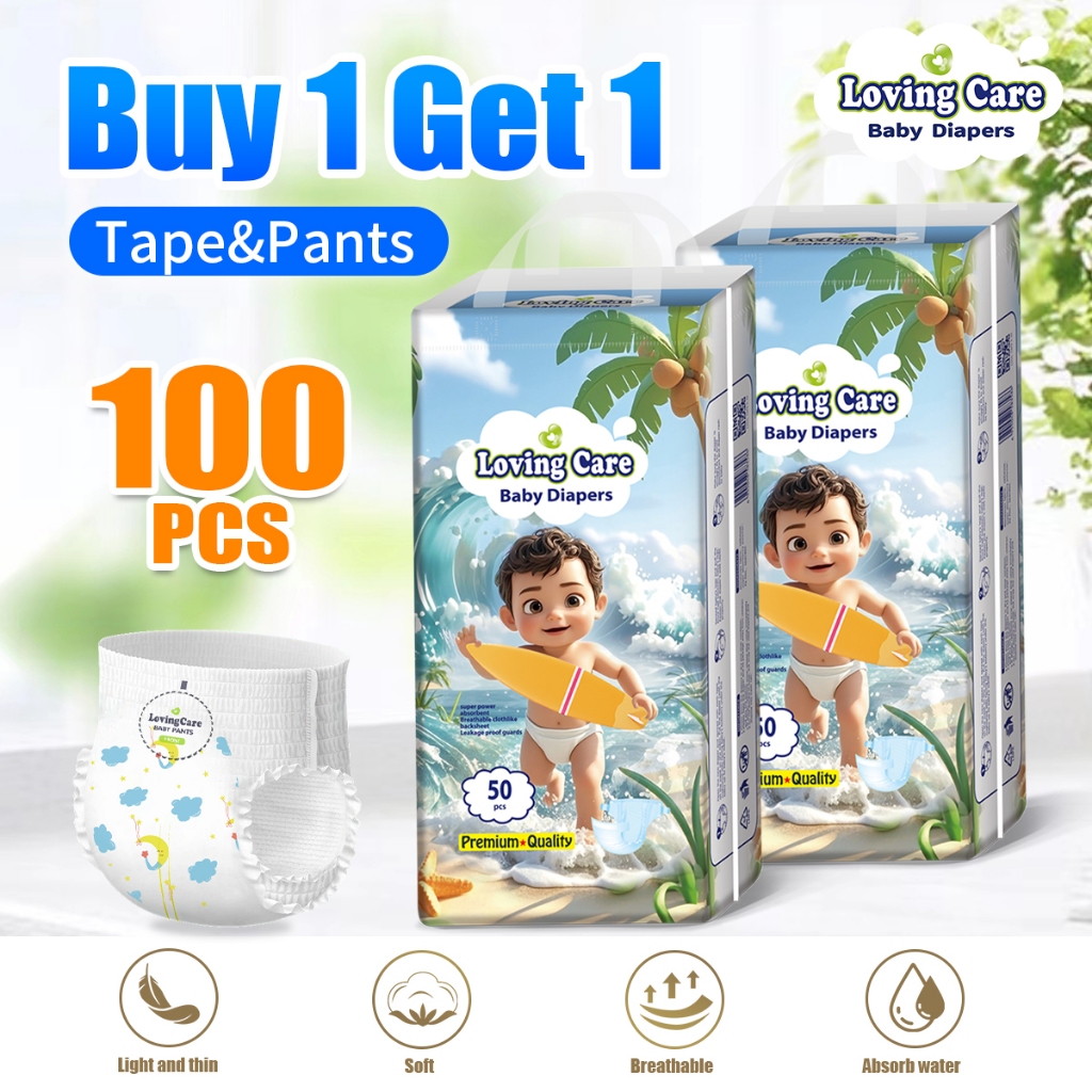 【B1T1】Loving Care Baby Diaper Quick-Dry 50Pcs*2 Pants/Tape NB S M L XL Unisex All Size Korean Diaper
