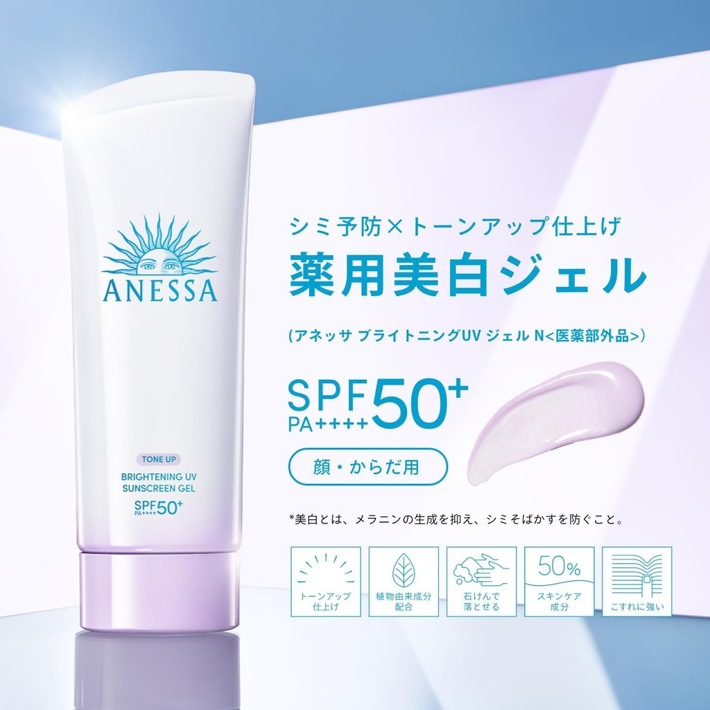 【Direct From Japan】ANESSA Brightening UV Gel N 90g SPF50+ PA++++ Sunscreen for face and body Makeup base Waterproof