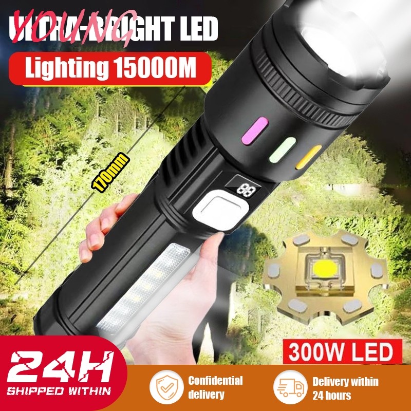 15000lumens Super Bright Zoom display LED Flashlight Rechargeabl Waterproof Outdoor Heavy Duty Recha